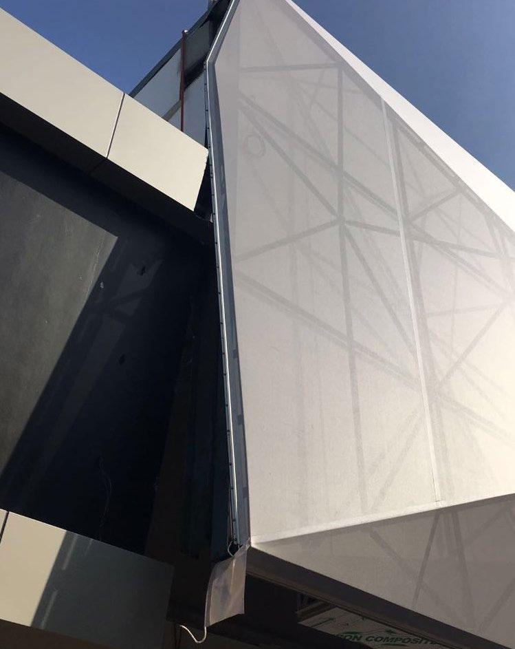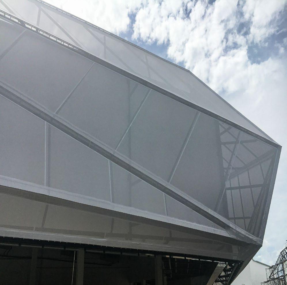 Material : PVDF-Coated PVC Mesh Fabric (34% Porosity) & “Shadow” PVDF-Coated PVC (900 g/m2)