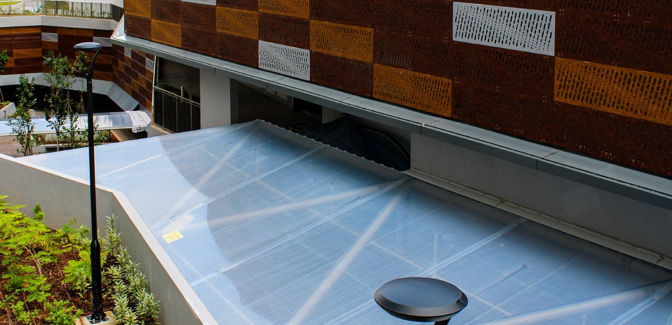 ADAS upgraded Kampung Admiralty’s aging retractable skylight with a durable ETFE Cushion system, enhancing natural light, weather resistance, and sustainability while eliminating leaks and preserving the site’s architectural vision.