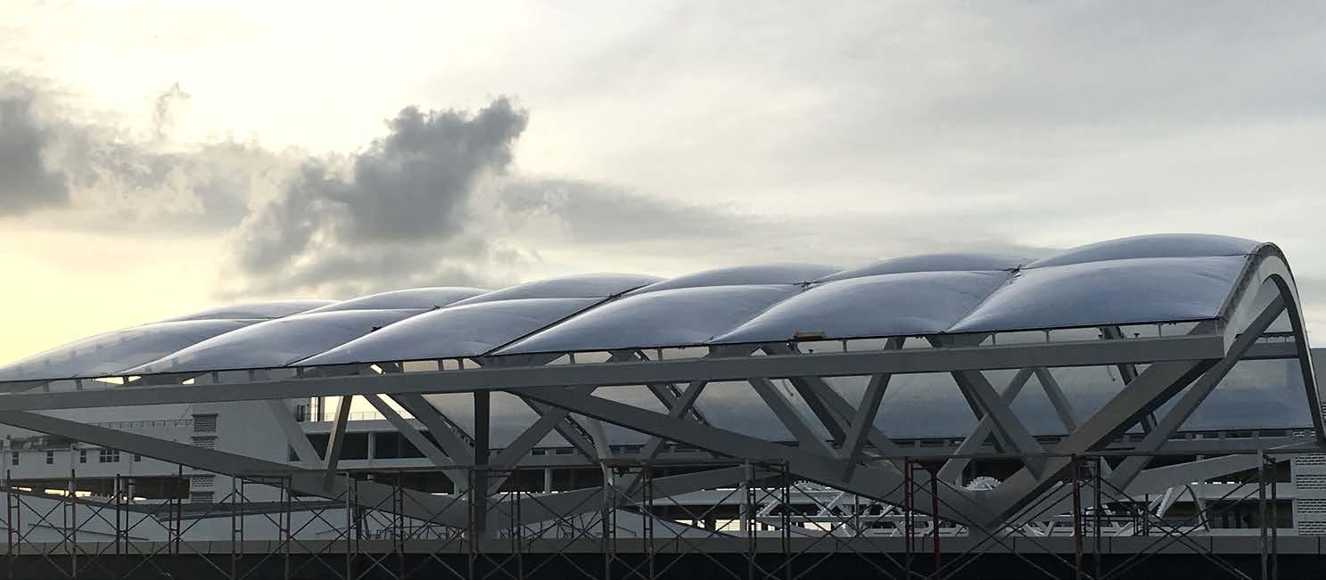 The Sultan Ibrahim Stadium is a state-of-theart sporting venue with a capacity of 40,000 spectators, located in Johor Bahru, Malaysia. The design is based on the shape of a banana leaf, and is clad in ADAS® trademark ETFE and PTFE tensile membrane that results in a spacious lightweight structure.