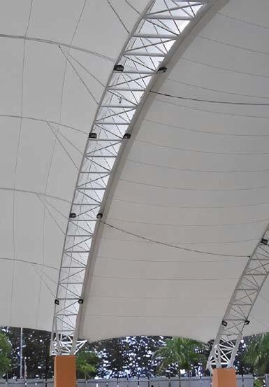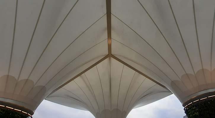 With a wide range of lowmaintenance, durable fabrics, the possibilities offered by tensile membranes are very wide. We can offer our clients many solutions for one single project to suit their budget and aesthetic requirements.
