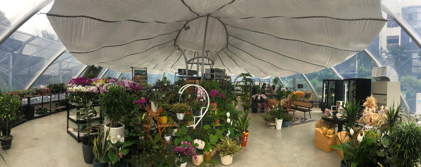 An iconic structure that houses a retail showroom for a floral shop. By using ETFE film, we were able to create a greenhouse experience for the visitors while they do their shopping. The free-form dome shape was formed by curved architectural steel as the main supporting component to the flexible ETFE membrane. The steel structure was further minimised through value engineering and the extremely light weight of the film. The interface between the membrane and structural steel is seamlessly integrated using proprietary detailing and aluminium fixtures that not only provide sufficient tensioning for a smooth, glass-like surface but also maintain air and water-tightness.