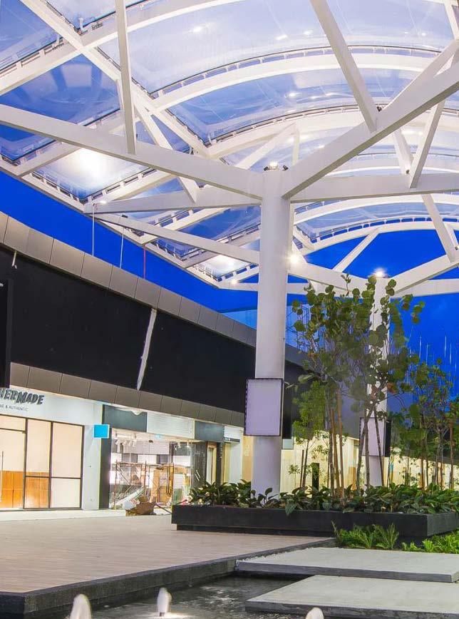 Designed to encompass a shopping boulevard for Sunway Iskandar, the transparent canopy at the M3 Main Boulevard consists of ETFE Single Layer and Double Layer Cushions held up by a dynamic structural support system. This hybrid of single-layer and double-layer ETFE membranes produces an alternating shadow effect due to their different light transmission properties.