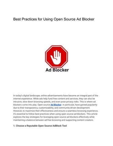 In today’s digital landscape, online advertisements have become an integral part of the internet experience. While ads help fund free content and services, they can also be intrusive, slow down browsing speeds, and even pose privacy risks. This is where ad blockers come into play. Open source Ad Blocker in particular, have gained popularity due to their transparency, customizability, and community-driven development. However, to maximize their effectiveness and ensure a seamless browsing experience, it’s essential to follow best practices when using open source ad blockers. This article explores the key strategies for leveraging open source ad blockers effectively while maintaining a balance between ad-free browsing and supporting content creators.