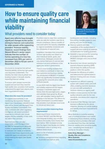 when many are already operating at a loss. The introduction of the Australian National Aged Care Classification (AN-ACC) funding model has not satisfactorily addressed this. However, it’s important to remember that fixing our aged care system is going to require long-term planning, and providers must continue to be part of the conversation in order to advocate for their own requirements and to help transform the industry into one that is sustainable for everyone.