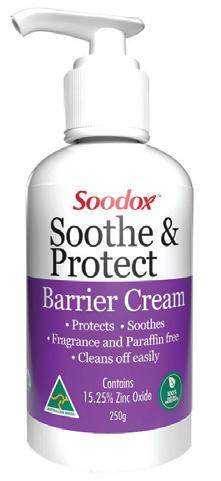 Maintaining healthy skin is crucial for overall health and well-being. Soodox™ Soothe & Protect Barrier Cream is an excellent preventive measure against skin irritation caused by occupational exposure to irritants. This is where barrier creams are effective, now available is Soodox™ Soothe & Protect Barrier Cream which is Australian made, 100% natural, paraffin and fragrance free. It is gentle enough to use on the most sensitive areas - incontinence rash, skin folds, under breasts, bedsores, and chafing. This cream is highly recommended for use before and during work, as it forms a lubricating film on the skin, preventing water depletion in the skin’s outermost layer.