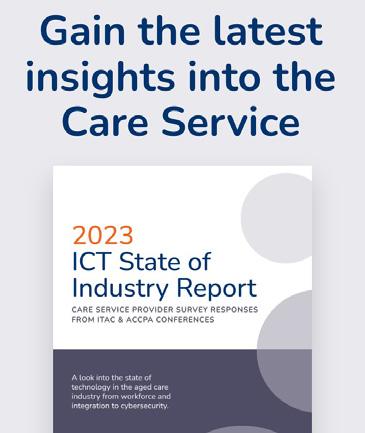 OPINION One year on, and going strong 7 Advocacy wins for aged care 9 A life-changing Federal Budget 11 NATIONAL UPDATE The six key areas of home care reform 17 Retirement villages: a ‘supported living’ model 19 Great leaders are made 21 Mentorship in aged care nursing 22 Discovering aged care careers goes national 25 Home care careers 27 Aged care employee day for everyday heroes 29 HEALTH & WELLBEING The bigger picture for infection control 32 Dignity for dementia 34 The importance of allied health 37 The power of physiotherapy in aged care 39 Improving care for survivors of stroke 40 How therapy dogs are helping aged care residents at Alino Living 43 The cold plasma revolution 45 The burden of chronic wounds 47 Biodegradable nitrile gloves 48 Preventing incontinence associated dermatitis 51 The value of a bidet 53 CULTURE & DIVERSITY Choice and control 54 Supporting the needs of Australia’s veteran retirees 57 CALD staff and technology 59 Tackling the winter blues 61 We all have a part to play 63 What you need to know about voluntary assisted dying 64 People with disability in aged care 67 WORKFORCE & TRAINING A smoother path for your super 69 A proven workforce strategy 70 Removing barriers for our older workforce can help us all 73 A unique aged care workforce solution 74 TAFE NSW traineeships help boost aged care workforce 77 Upskill your staff with free learning 78 Training for osteopaths in aged care 79 Proof we need more staff 81 Immersive training key to changing the face of ageing 82 GOVERNANCE & FINANCE Improving care standards 83 Notices to agree, non-compliance and human resource challenges 85 Refundable deposits for aged care providers 89 Why asset management plans are not set-and-forget 91 Avoid the major derailer of a merger or acquistion 92 Navigating compliance challenges: a case study 94 AN-ACC, six months on 95 Third-party cyber breaches 96 The future of in-home aged care 97 INNOVATION & TECHNOLOGY The right technology solution 98 State of the industry report into technology in aged care 99 Building excellence in technology 100 A game-changer in aged care 102 AI in aged care 104 The benefits of technology delivered via television 105 Independent study demonstrates value of fit-for-purpose technology in aged care 106 Top 10 tech tips to keep your clients at home 108 Contents Why asset management solutions are a must 109 Home care client management, rostering, invoicing, payroll 110 Technology designed for aged care providers 111 BUILT ENVIRONMENT & DESIGN Paynters and ECCQ build a bolder future for inclusive care 112 Affordable homes for life help older renters age in place 114 New model of seniors’ living in demand 117 Housing affordability and age-appropriate design 119 Maximising the small household model 120 WHAT’S NEW What’s new 122 EDITOR’S NOTE