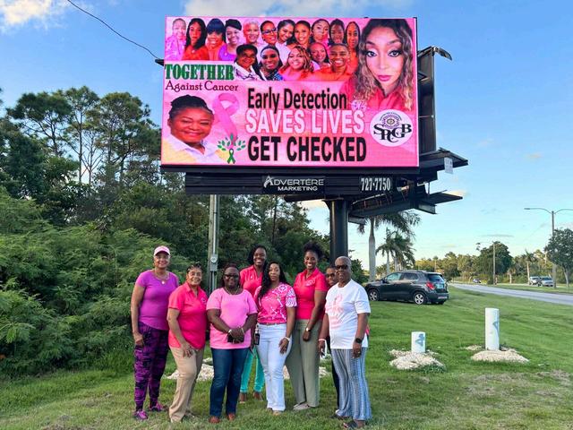 TheSunsetPilotClubofGrand Bahama isproudtohave partneredwiththeCancer Societytoencouragewomen acrossourislandtotake chargeoftheirhealth. Together,wecreated an informativeflyeranddigital ad remindingeveryonethatearly detectionsaveslives! ��