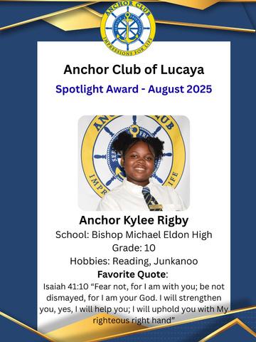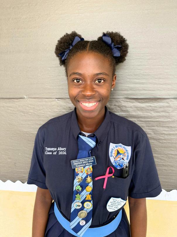 Anchor spotlight winner. Tyquanya Albury. Grade12 deputy head girl. PJB Anchor Club, Abaco.
