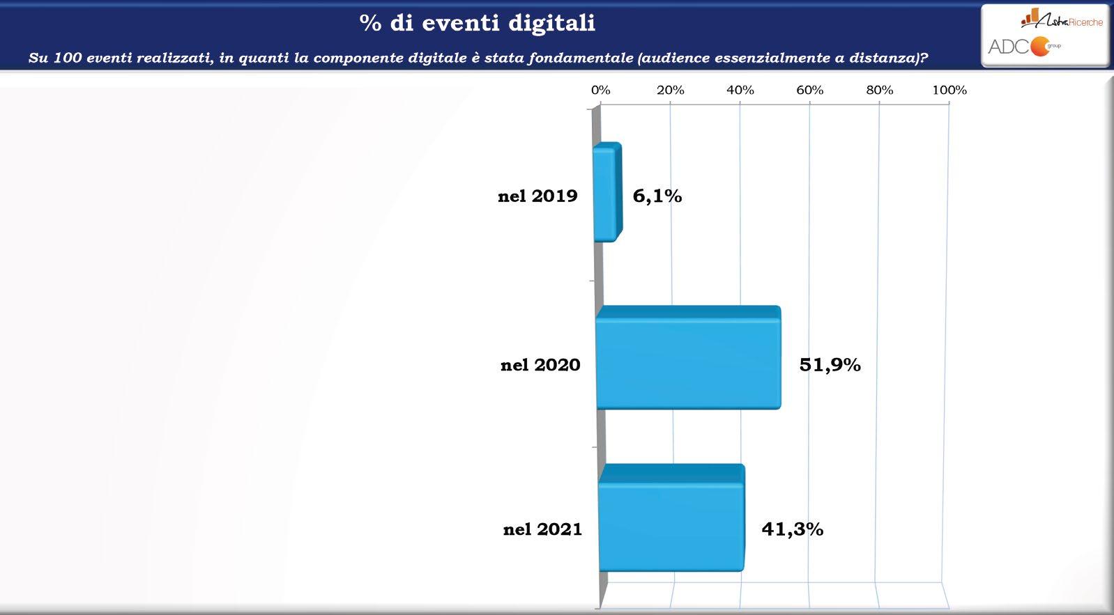 Il particolare momento storico appena trascorso ci ha messo davanti a una nuova importante sfida che ci ha portato a uscire dai confini materiali degli eventi per spostare l’experience in un luogo che può vivere sia in un ambiente fisico sia digitale, dove partecipazione, incontro, scoperta, emozione, confronto, networking, elementi tipici di un evento fisico, non solo vengono mantenuti ma addirittura migliorati e amplificati. Le più moderne tecnologie, unite alla nostra competenza nel settore ci hanno permesso di ideare eventi sempre innovativi, con partecipanti da ogni parte del mondo, per un’esperienza a 360 gradi, indipendentemente da dove la si viva.