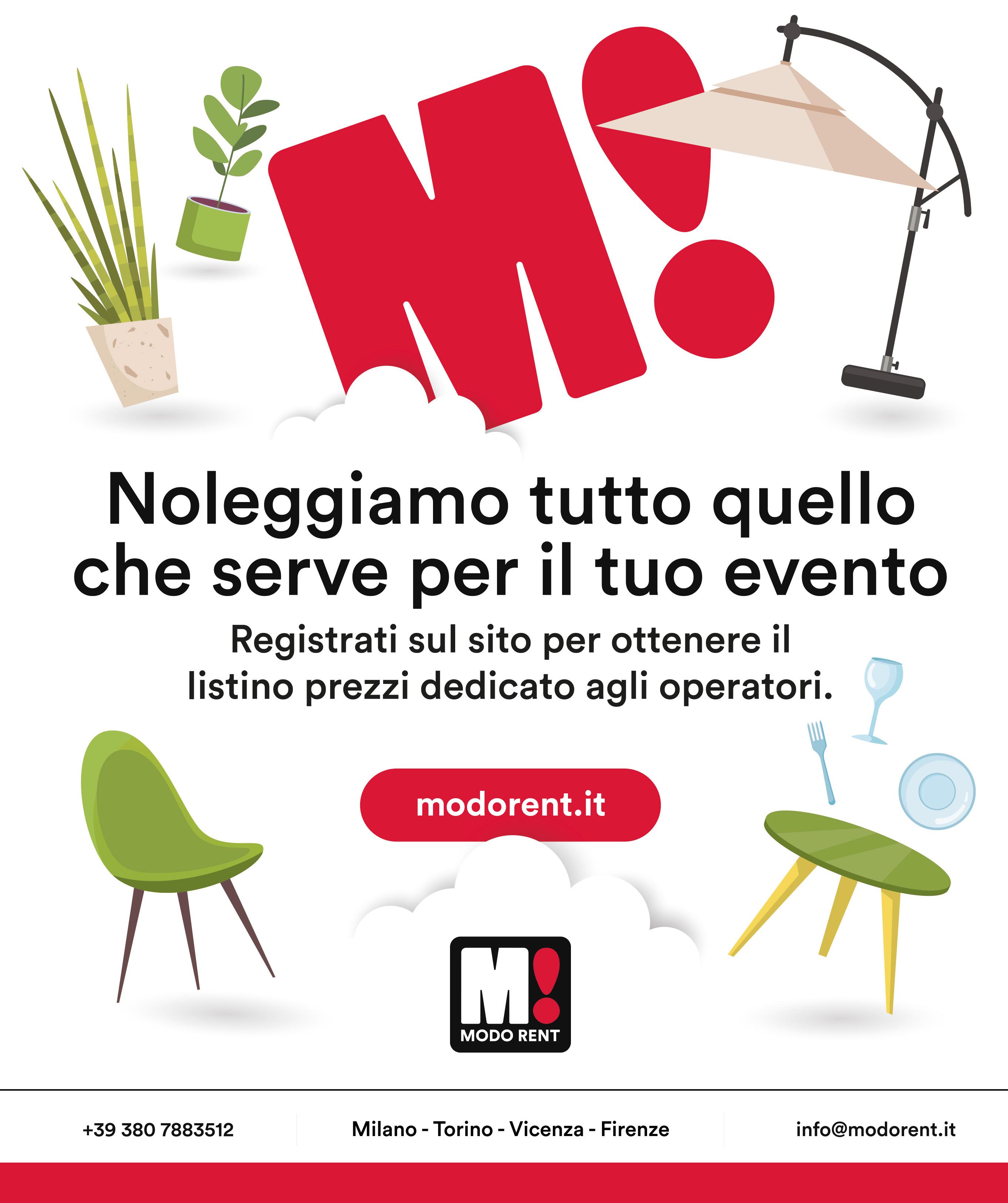 Noleggio arredi, mise en place e attrezzature per eventi. Grazie al servizio di progettazione e consulenza è al fianco degli organizzatori di eventi aziendali ad alto impatto come congressi, convention, sfilate, ricorrenze, lanci prodotti, workshop e inaugurazioni, ma anche di eventi privati. Velocità di preventivazione, puntualità nelle consegne, qualità degli arredi, delle mise en place e di tutti i materiali utilizzati.
