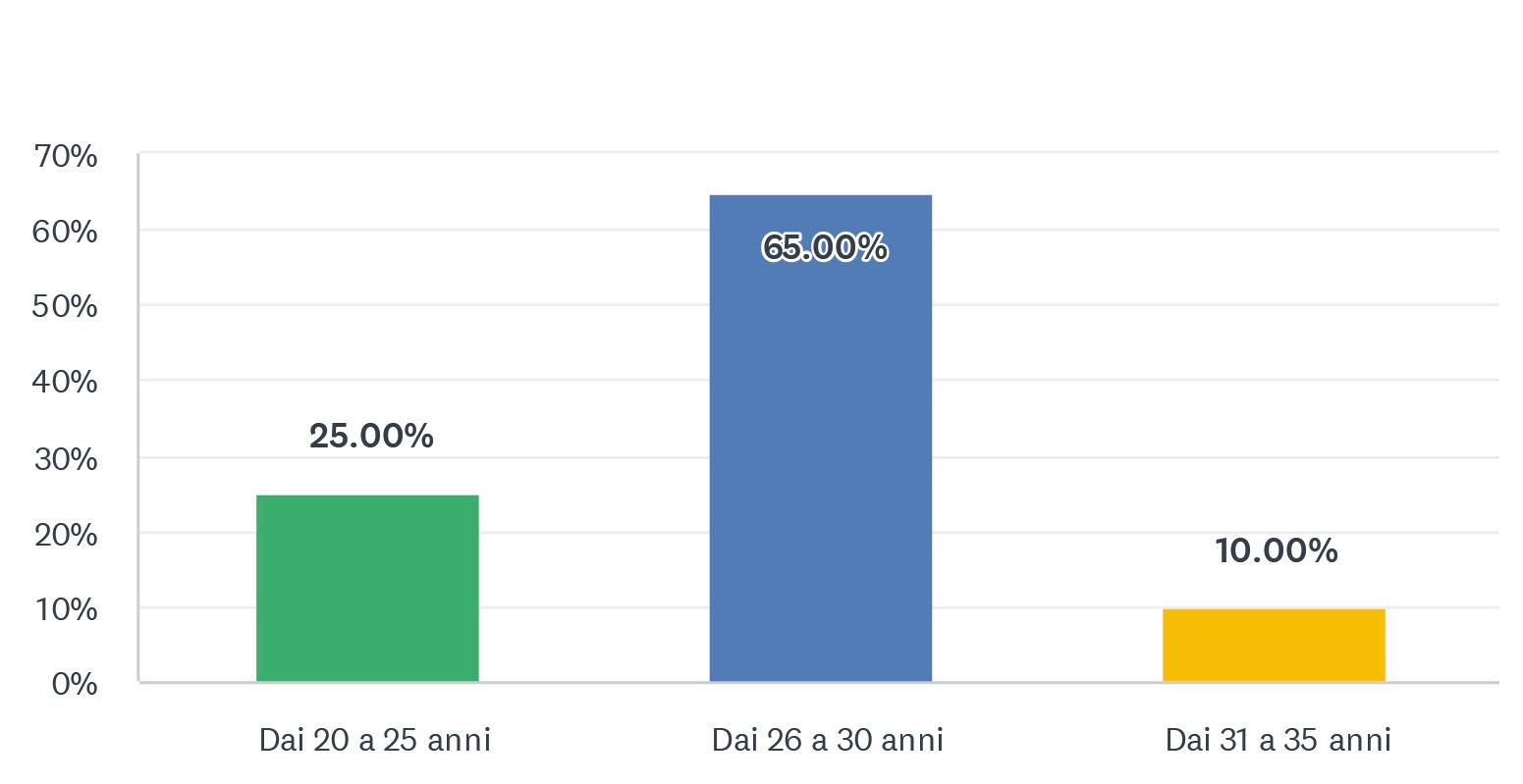 I giovani talenti (under 28 anni) costituiscono il 35% del totale e rappresentano una componente fondamentale per la crescita e il rinnovamento continuo dell’azienda.