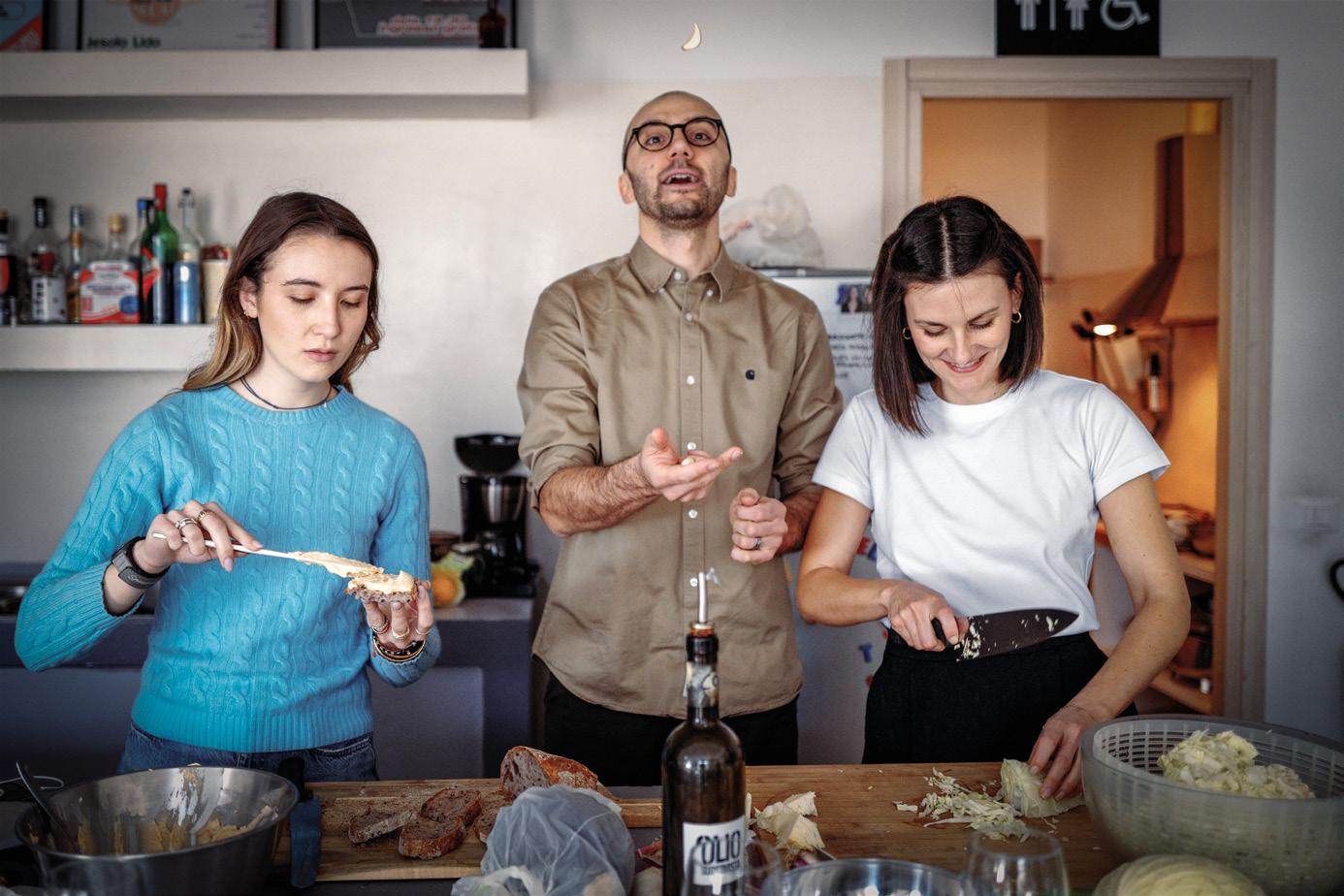 B cuciniamo e pranziamo insieme tutti i giorni. È incredibile vedere come questo semplice gesto crei un senso di appartenenza. Abbiamo persone in call che tagliano le zucchine e brainstorming che si trasferiscono a tavola, davanti a un piatto di pasta e fagioli. Più volte all’anno, i reparti o l’intera agenzia organizzano viaggi o visite di gruppo.