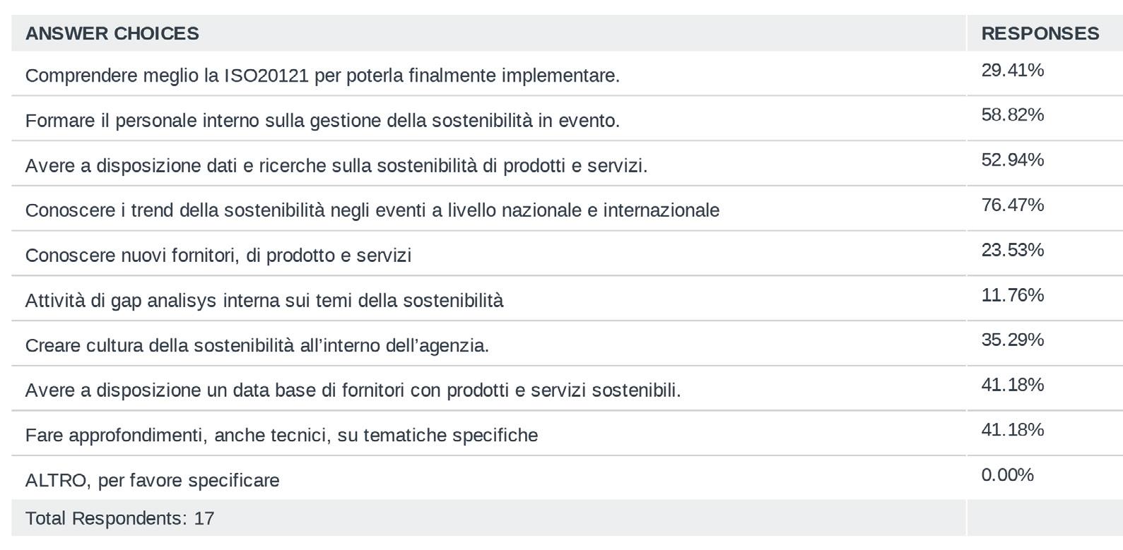 • 76,47% vuole conoscere meglio i trend della sostenibilità nel settore eventi, a livello nazionale e internazionale.