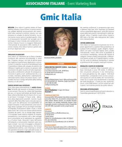 Gmic Italia MISSION. Gmic Italia è il capitolo italiano di Green Meeting Industry Council (Gmic), la prima community globale dedicata esclusivamente alla sostenibilità nella meeting & incentive industry, non solo attraverso lo sviluppo di attività formative, ma anche tramite ricerca, policy e standard specifici. Gmic è un’associazione non-profit che raccoglie soci in venti paesi in tutto il mondo, ed è membro del Convention Industry Council, la maggiore federazione internazionale di associazioni della meeting & incentive industry. Gmic Italia è il primo Capitolo nato al di fuori degli Stati Uniti.