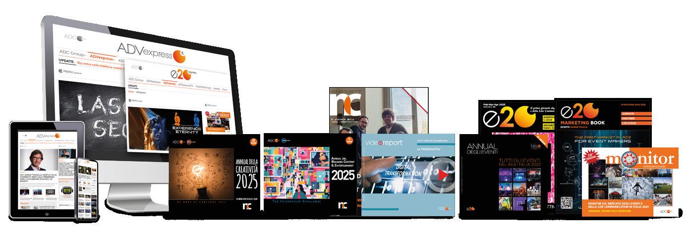 Oltre alla versione stampata, il volume è consultabile online nella sua edizione digitale sfogliabile, pensata per garantire un accesso immediato e interattivo ai contenuti.Vi ricordo inoltre che i rappresentanti della filiera potete trovarli anche nella nostra directory online, sul portale di Adc Group (www.adcgroup.it), dove è possibile esplorare profili, mission, servizi e progetti realizzati da agenzie e partner degli eventi.