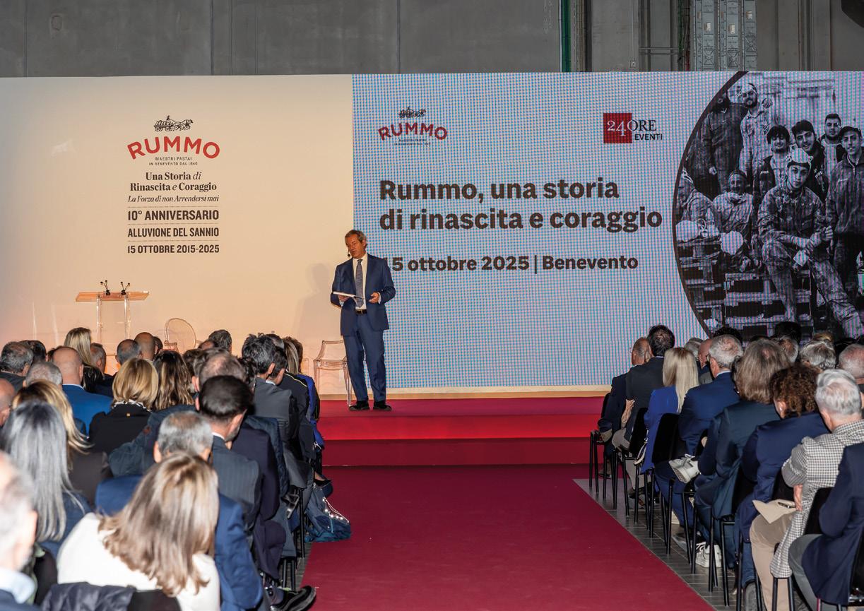 Descrizione: a dieci anni dall’alluvione che colpì Benevento, il 15 ottobre 2015, Pastificio Rummo si racconta per trasformare il ricordo di una ferita in un racconto di rinascita e visione. ‘Rummo, una storia di rinascita e coraggio’ è stato l’evento curato da 24 Ore Eventi per celebrare un decennio di resilienza condivisa tra impresa e territorio. Un pomeriggio di dialoghi e riflessioni con la partecipazione di esponenti del mondo istituzionale, economico e sociale. Un percorso costruito per raccontare la storia di un’impresa e la sua rinascita come simbolo dell’Italia che sa rialzarsi, valorizzando sostenibilità, coesione e innovazione. L’evento ha rappresentato un modello di storytelling aziendale autentico, capace di coniugare memoria e futuro, impresa e comunità, per ispirare nuove forme di responsabilità e benessere condiviso.