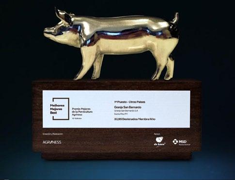 Tri” pa ra g ra nja Sa n Berna rd o Por tercer año la granja San Bernardo (Alto Paraná) se adjudicó en su categoría con la distinción “Lechón de Oro” frente a otros competidores de Latinoamérica. Esta fue la 12ª edición del proyecto de benchmarking ideado por la firma Agriness
