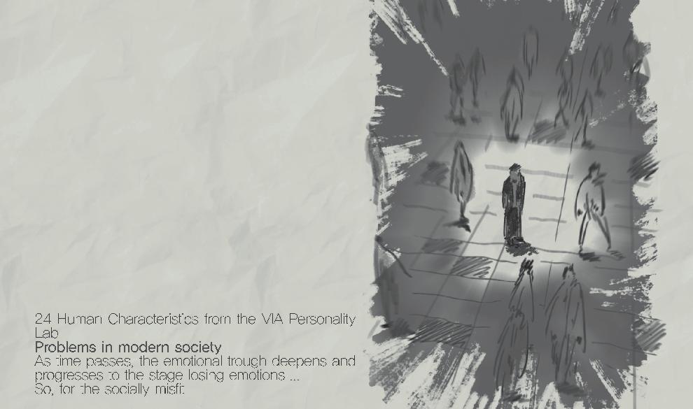 social outcasts. In an attempt to solve social problems, we provided a space for people who are not treated equally and do not adapt well to society. The theme of this space was inspired by the movie “Joker.” Particularly, we wanted to create a space for people like Joker, who is discriminated against in the oppressed society.