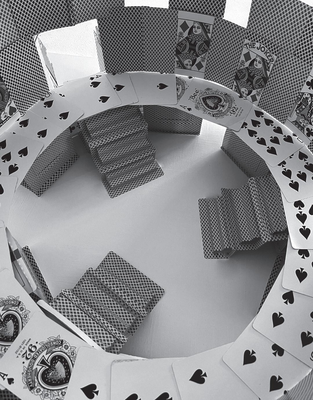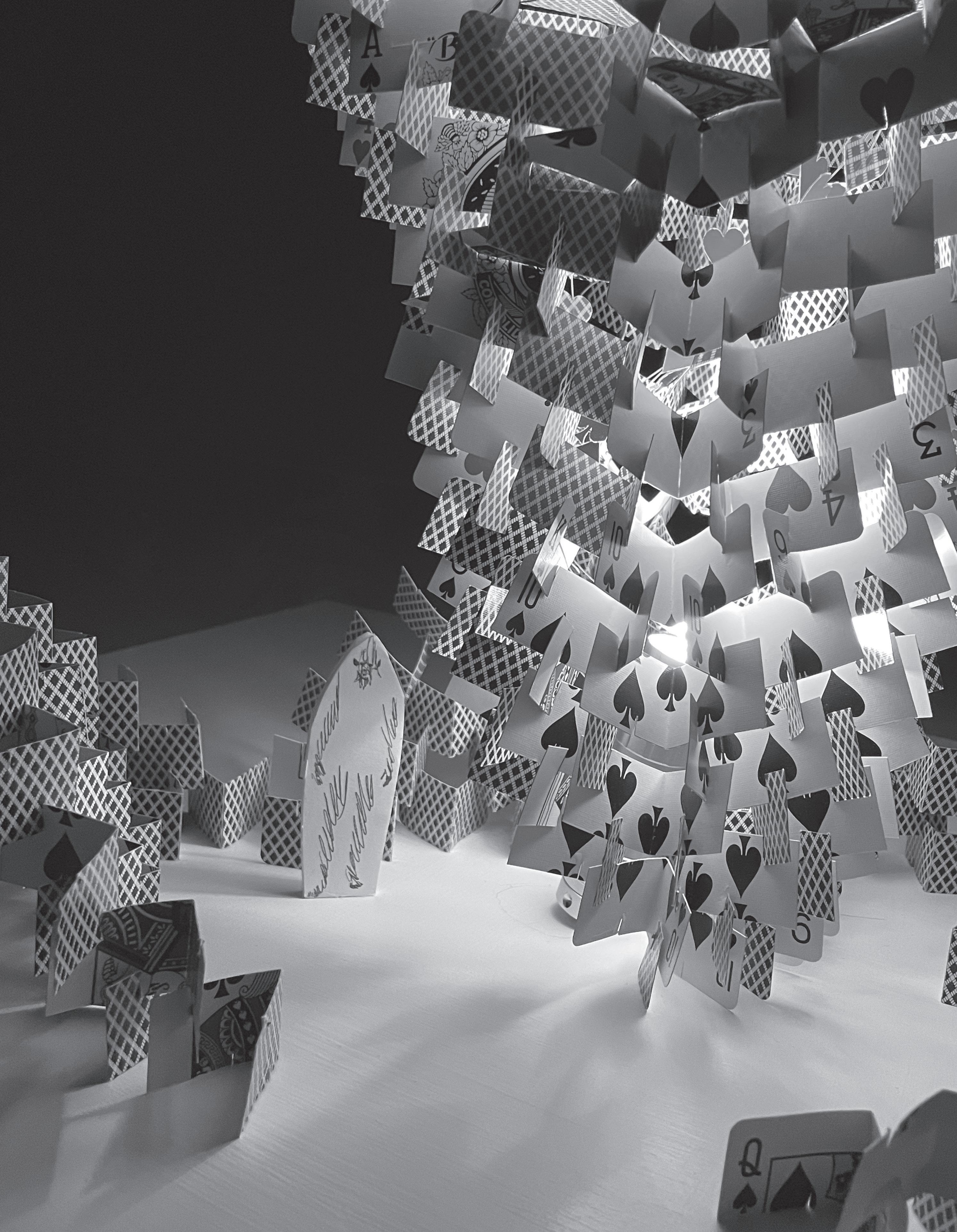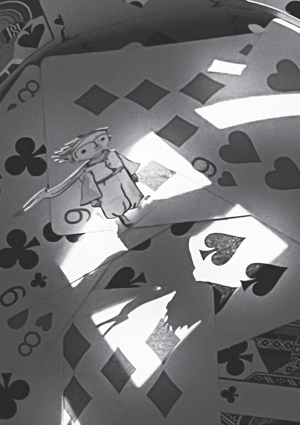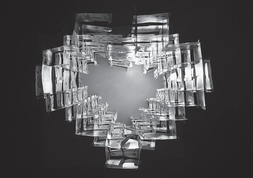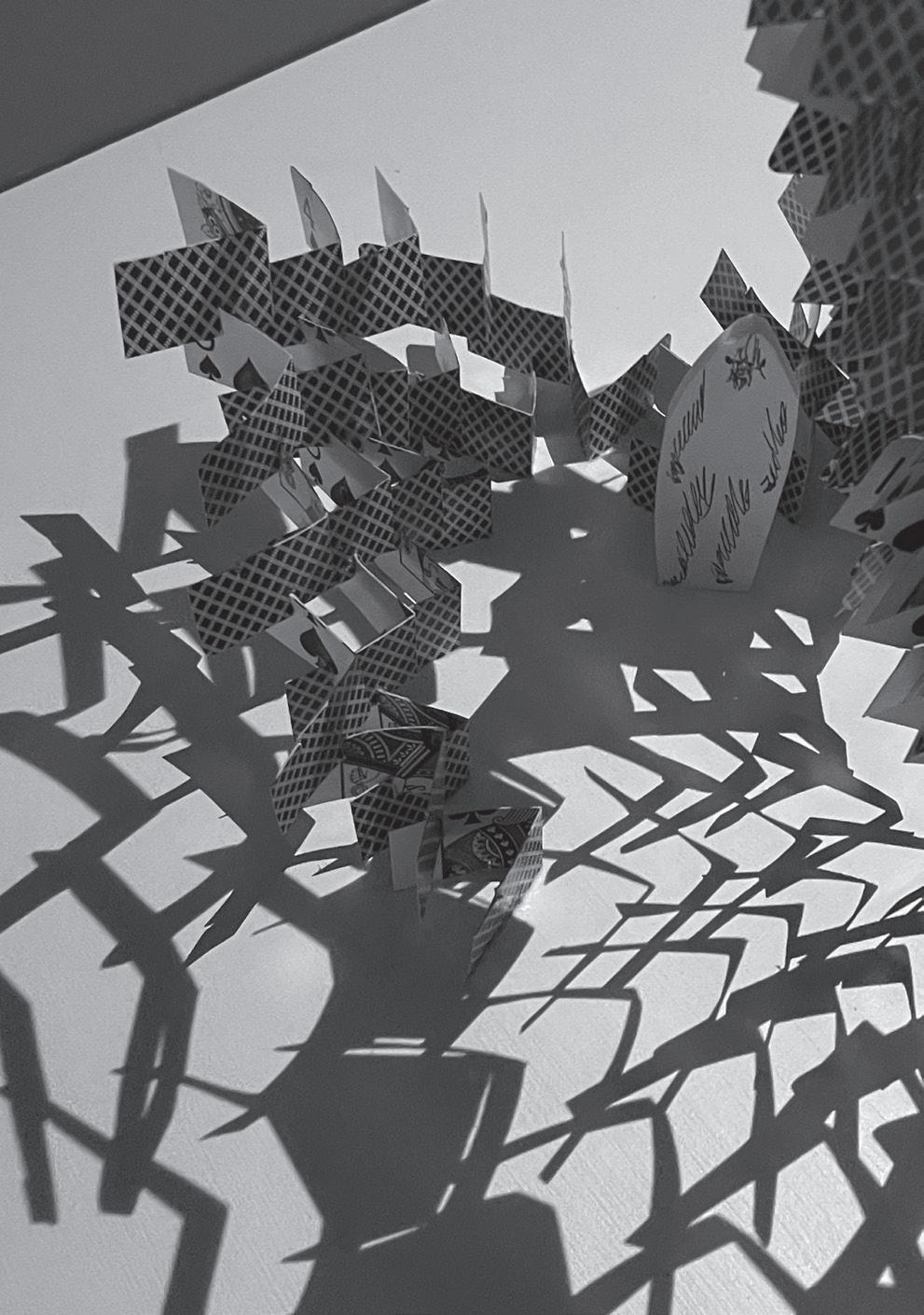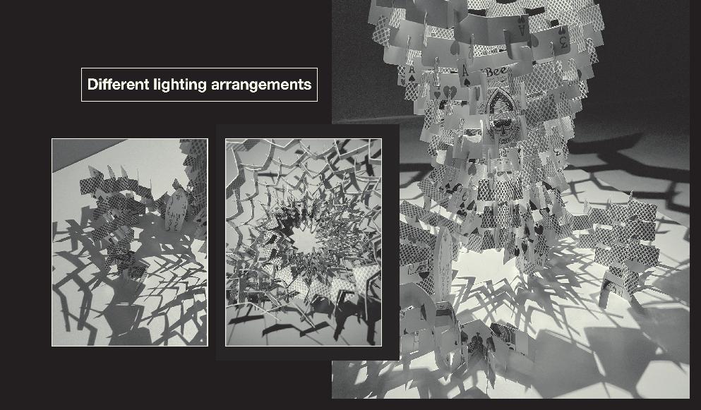 Second, we use death, a characteristic of the spade card, as an opening to convey hope as the light in the spade shape enters the space.