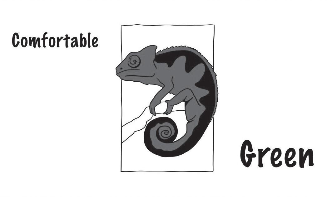 To solve this problem, you have to express your feelings and communicate with people. Thus, we use the chameleon to externally express our inner feelings. Chameleons are often known for changing their body color to hide. However, they also do this to communicate and express their feelings. Particularly, the skin reflects the light and expresses emotions in various colors.