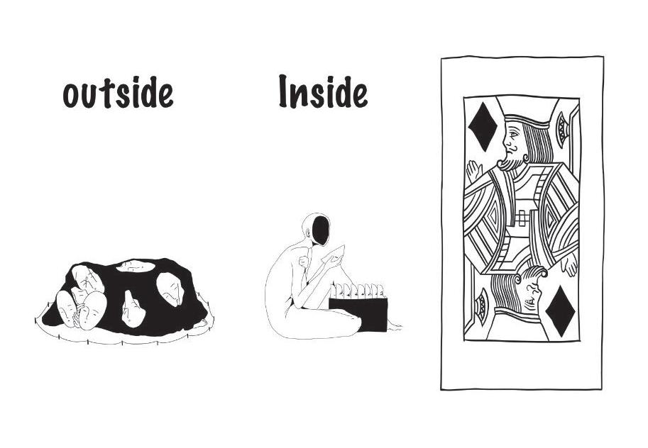 Finally, the entry space is where the rotating cards are placed to intersect the inside and outside. This indicates that people enter the space and focus on their emotions from the outside. I would like to emphasize we symbolize the interior of a person by using cards such as K and Q.