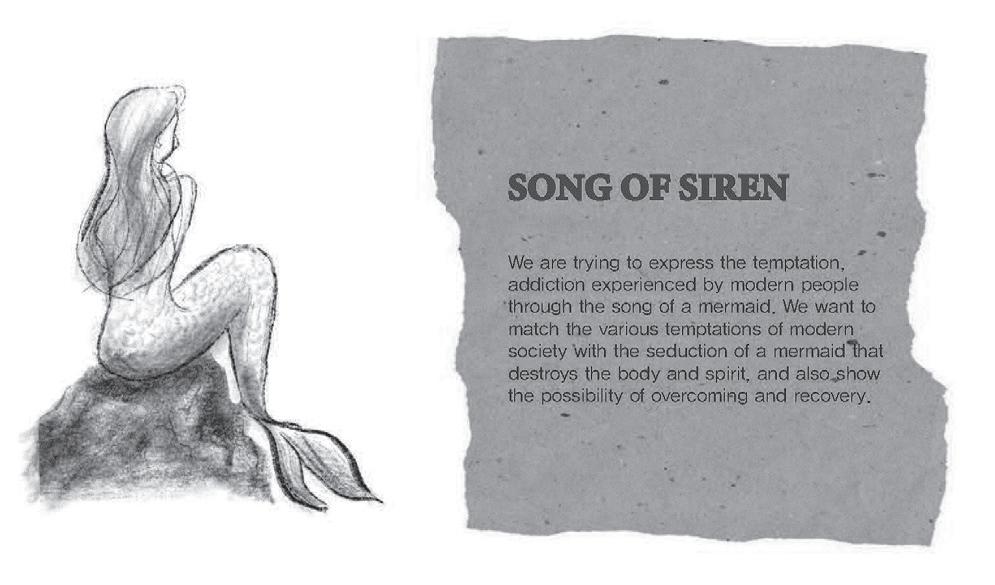 I will briefly describe the process we have conducted. As the pandemic period extended, the distance between people increased. Previously resisted minor temptations have become strong enough to destroy a person. The temptations that exist in everyday life are destroying people both mentally and physically. The siren was the main characteristic we used. Particularly, they seduce sailors and break their bodies and spirit.