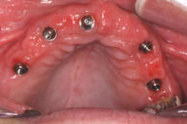 15. Aspectul intraoral la finalizarea etapei chirurgicale; implanturile au fost inserate