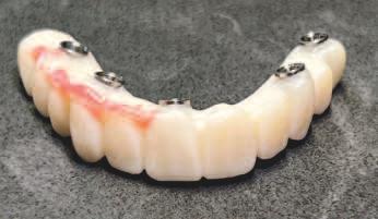 Soluț a pentru reab l tarea protet că full-arch a pac entulu cu mplantur d scutată a c abordează complex tatea restaurăr folos nd un flux de lucru d g tal s mplu ș repetab l. Sunt necesare doar două programăr pentru a restaura f x o arcadă totală cu, ș susț nută pe mplantur . Dacă este necesară o probă a des gnulu protet c, aceasta poate f real zată pr n descărcarea ș mpr marea 3D a f ș erulu STL al des gnulu f nal al proteze . Apo , este necesar un protocol cu tre programăr pentru a încorpora proba des gnulu protet c mpr mat. Fonet ca, estet ca ș ocluz a pot f evaluate, ar dacă sunt necesare ajustăr , se înreg strează ș se încarcă s mplu o scanare a proteze testate mod f cate pe portalul producătorulu . O proteză prov zor e med ată, precum ș o proteză de probă, pot f mplementate în aceeaș z cu tehnolog a de mpr mare 3D.