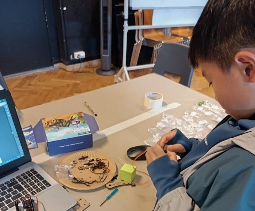 “The first project in the STEAM class was about MicroBit Ai. They would get a MicroBit chip they would try to train with the programming in the computer. The objective was to have the Microbit chip in a box with a phone and when someone tries opening the box the microbit would start making a noise to alarm that the box is opened. It was a really fun project to do because to teach the kids more about Ai and a part of STEAM.”