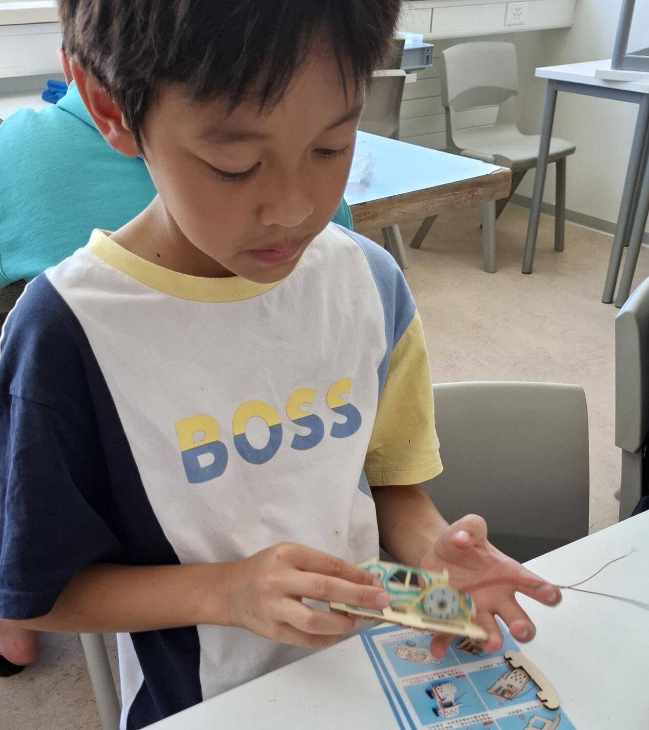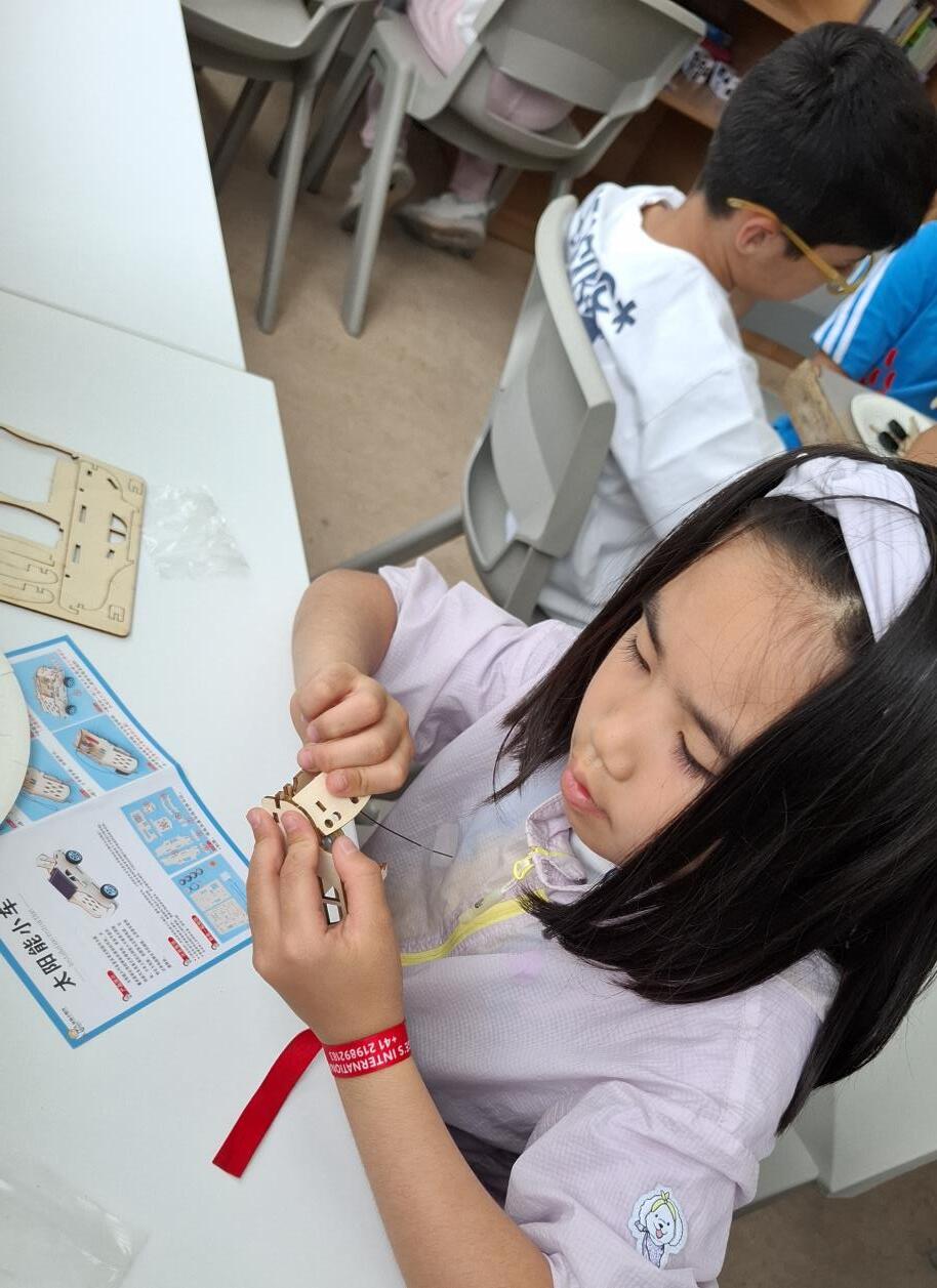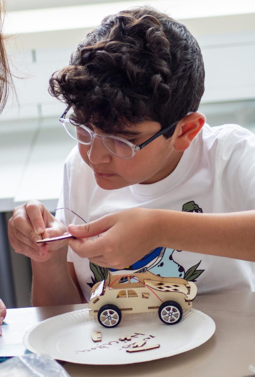 “The Solar Powered Car project was a fun project for the kids to learn and build. It was a way to teach kids how the solar panel works. So they had to build a car with wooden pieces, then the solar panel had to be connected to a motor and the motor moves when the solar panel is in the sun. We put the car outside for the solar panel to be in the sun. It was a really nice project for us to learn about the solar powered car. “