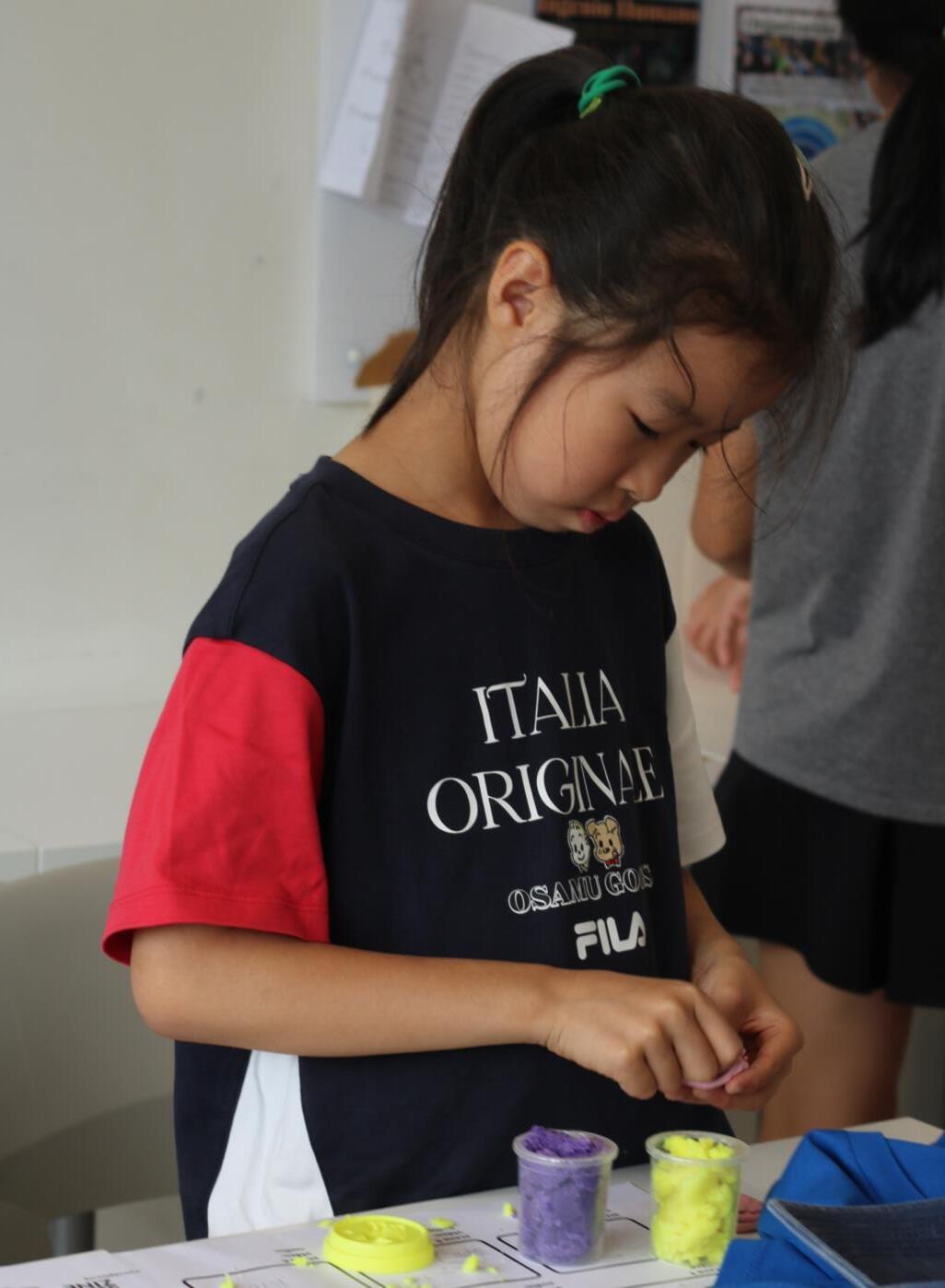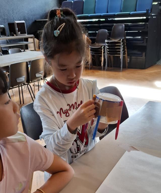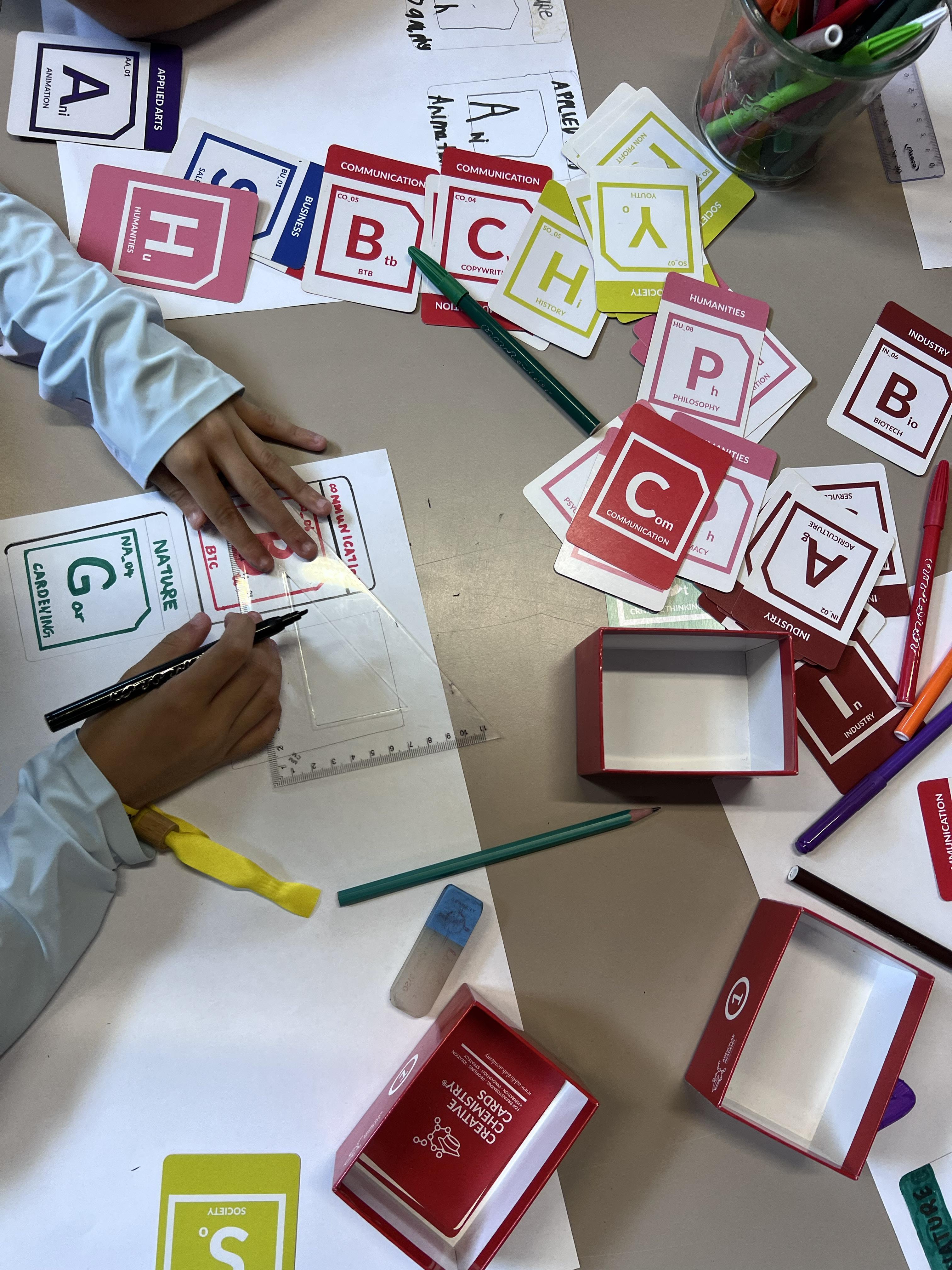 “The first STEAM class organized for the kids was about themselves. They had to find four cards from the creative chemistry cards to show what they like doing. After putting their four picked cards they would write some sentences about it like their name, where they are from and why did they pick those cards. Then we add their picture on the paper and their creative chemistry cards are done. That is what the STEAM class did for the first day. “