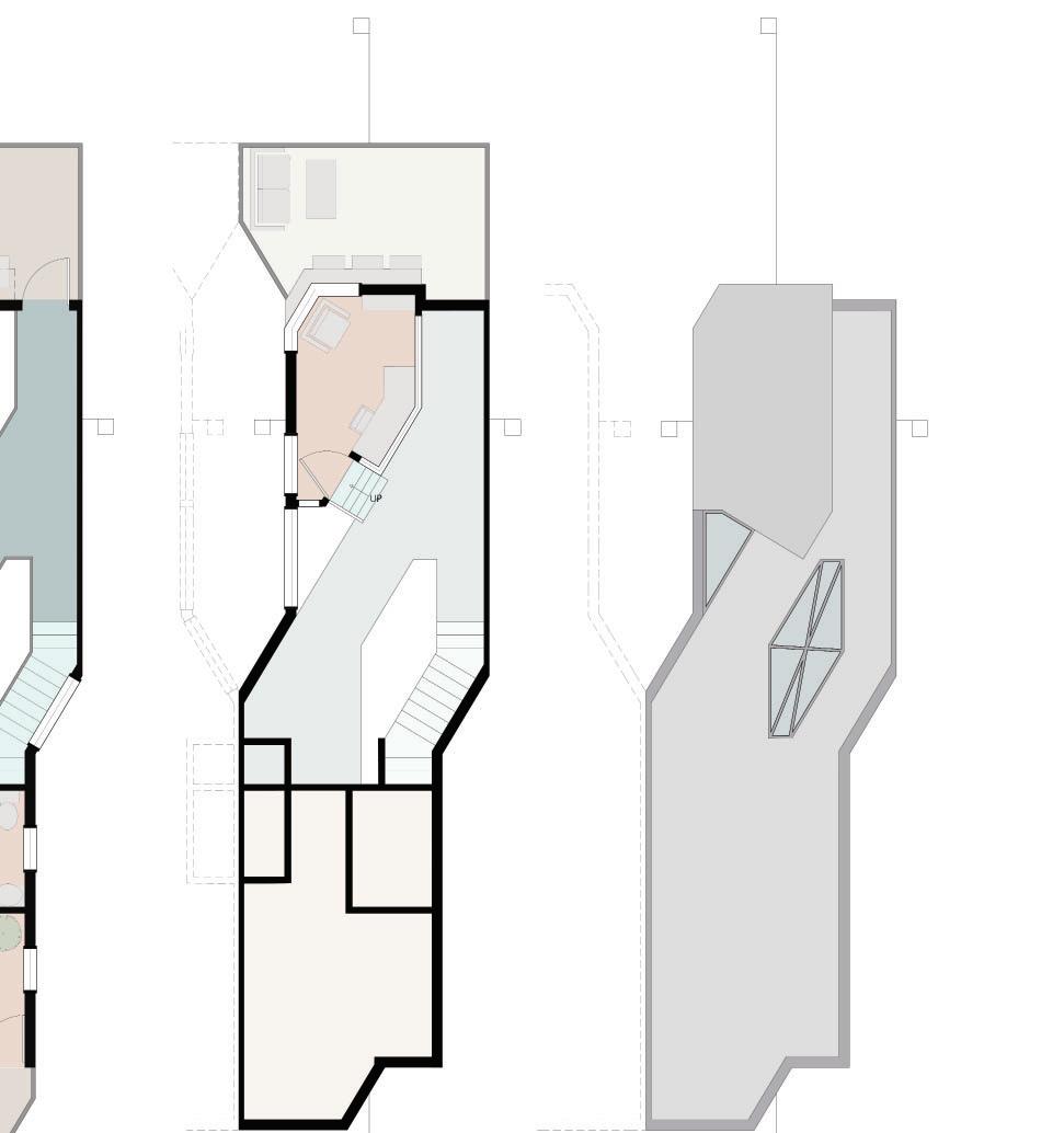 The Well House is an owner + renter rowhome in Mantua, Philadelphia designed to take advantage of light and a connection to the outdoors. The rowhome has a rental unit that fills the first floor and a homeowner unit that occupies the second and third floors. Both units have separate entrances off of the shared front porch, as well as access to their own private outdoor spaces with the home owners having a large deck space and the renters having a backyard. The form of the rowhouse cuts in and out, creating slender lightwells that create small courtyards when placed next to other Well House rowhomes.