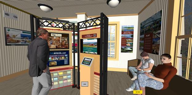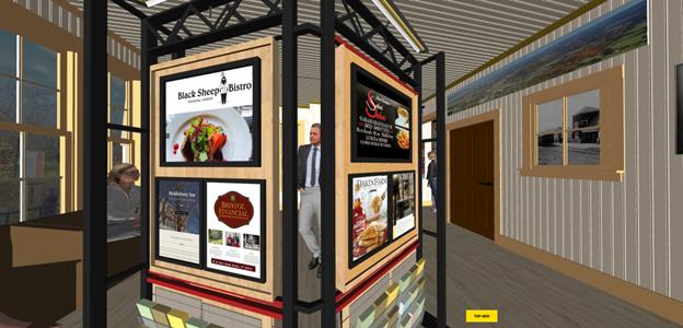 The Visitor Center provides multiple low cost advertising opportunities to both members and non-members. These include print advertising positions on the centrally located kiosk and video slide advertising on two 55" video monitors