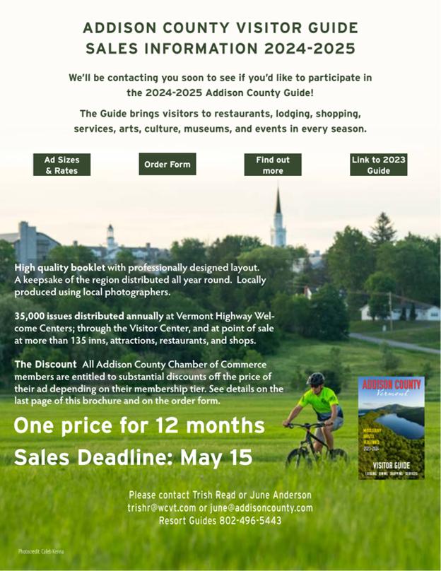Supported by a two year grant from the Vermont Department of Marketing, Imagine Addison County will be activated with advertising from both the local and state levels driving interest from non-Vermonters in “Living, Working and Playing” in Addison County. The campaign will be supported by a full time position at the Chamber who will interact with potential new arrivals both before and after they move to Addison County.