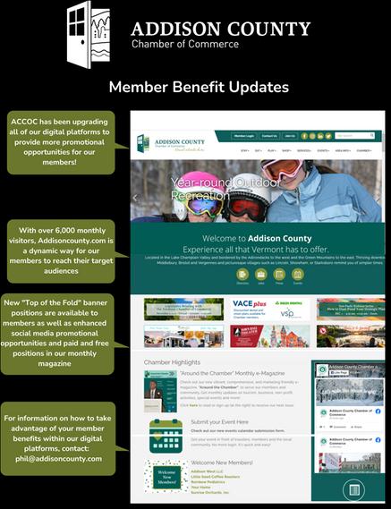 For more information about the benefits of membership in the Addison County Chamber of Commerce and a new member application go HERE