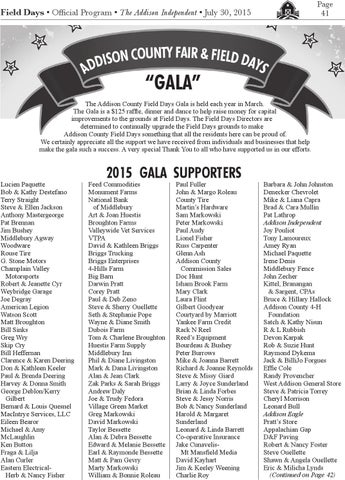 Field Days • Official Program • The Addison Independent • July 30, 2015