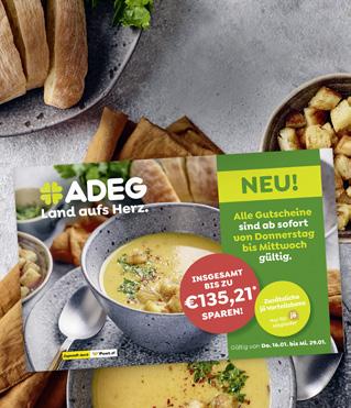 *Gültig von 17.01. bis 18.01.2024. Nur in teilnehmenden ADEG Märkten. Nur mit gültiger jö Karte und Gutschein aus dem Flugblatt, der jö äpp, dem ADEG Newsletter oder der ADEG Website bei einem Einkauf bei ADEG. Einmalig auf einen Einkauf einlösbar und nicht übertragbar. Pro Aktion können maximal 450 Ös gesammelt werden. Gesammelte Ös können erst ab dem Folgeeinkauf eingelöst werden. Ausgenommen buchpreisgebundene Artikel, Pre und 1er Milchnahrung, Flaschenpfand, Tabakwaren, Rubbellose, Lotto, Toto, Gutscheine und Wertkarten sowie Tchibo und Eduscho Artikel. Nicht mit anderen Mehrfach- oder Zusatz-Ös Aktionen oder Gutscheinen kombinierbar. Keine Barablöse möglich. Es kann bezüglich der von der Aktion ausgeschlossenen Waren zu weiteren Einschränkungen in den teilnehmenden ADEG Märkten kommen.