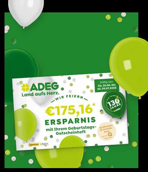 *Gültig von 27.06. bis 28.06.2025. Nur in teilnehmenden ADEG Märkten. Nur mit gültiger jö Karte und Gutschein aus dem Flugblatt, der jö äpp, dem ADEG Newsletter oder der ADEG Website bei einem Einkauf bei ADEG. Einmalig auf einen Einkauf einlösbar und nicht übertragbar. Pro Aktion können maximal 450 Ös gesammelt werden. Gesammelte Ös können erst ab dem Folgeeinkauf eingelöst werden. Ausgenommen buchpreisgebundene Artikel, Pre und 1er Milchnahrung, Flaschenpfand, Tabakwaren, Rubbellose, Lotto, Toto, Gutscheine und Wertkarten sowie Tchibo und Eduscho Arti kel. Nicht mit anderen Mehrfach- oder Zusatz-Ös Aktionen oder Gutscheinen kombinierbar. Keine Barablöse möglich. Es kann be züglich der von der Aktion ausgeschlossenen Waren zu weiteren Einschränkungen in den teilnehmenden ADEG Märkten kommen.