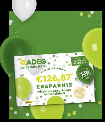Die Dauerniedrigpreise gelten ab 21.06.2021 in allen teilnehmenden ADEG-Märkten (zu finden unter adeg.at) und beziehen sich auf die bisherigen unverbindlich empfohlenen Verkaufspreise der ADEG. Solange der Vorrat reicht. Bei den angeführten Aktionspreisen handelt es sich um unverbindliche Preisempfehlungen der ADEG. Gültig in allen teilnehmenden ADEG Märkten.