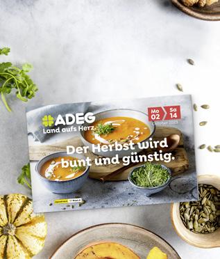 Mo 02 Oktober 2023 Sa 07 Angebote gültig von 02.10. bis 07.10. in allen teilnehmenden ADEG Märkten (zu finden auf adeg.at) solange der Vorrat reicht. Abgabe nur in Haushaltsmengen. Preise inkl. Steuer, exkl. Pfand. Druck- und Satzfehler vorbehalten. Bei den angeführten Aktionspreisen handelt es sich um unverbindliche Preisempfehlungen der REWE Großhandel GmbH (im Folgenden: ADEG). Stattpreise sind bisherige unverbindliche Preisempfehlungen der ADEG. *Ersparnis bezieht sich auf einen Einzelstückpreis. Bitte sammeln Sie Altpapier für das Recycling EU Ecolabel : AT/053/005 RIESEN PREIS ZUCKERL Gültig von 02.10.-07.10. 5fach Ös auf Ihren Einkauf am 06. und 07. 10. 23. Gutschein im Innenteil! Sammler Wochenend’ adeg.at 1,26 6,90 0,73 Emmi Caffé Latte div. Sorten 230 ml beim Kauf von 3 Stück je 1 Liter 5.48 2+1 GRATIS Statt 1,89/Stück Bio Mohnweckerl** beim Kauf von 3 Stück je **nur in Märkten mit Backstube erhältlich 2+1 GRATIS Statt 1,10/Stück Schopfbraten ohne Knochen im Ganzen, natur in Bedienung od. SB-Packung per kg 4,09 sparen! Statt 10,99