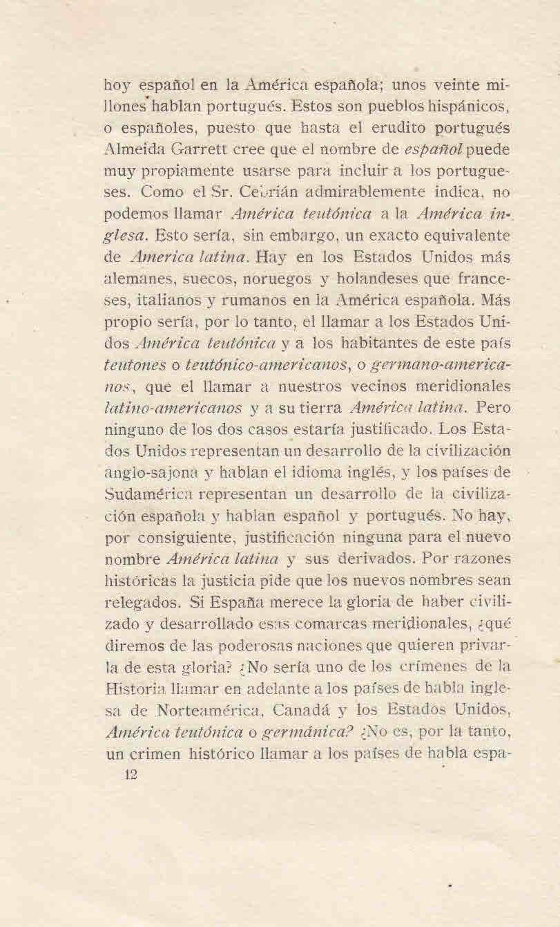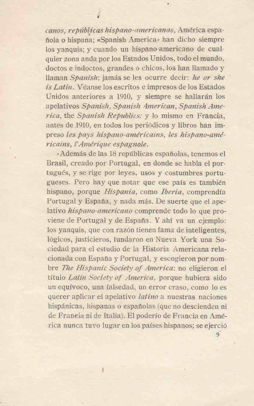 América Española o Hispano América: El Término América Latina es Erróneo (1919)