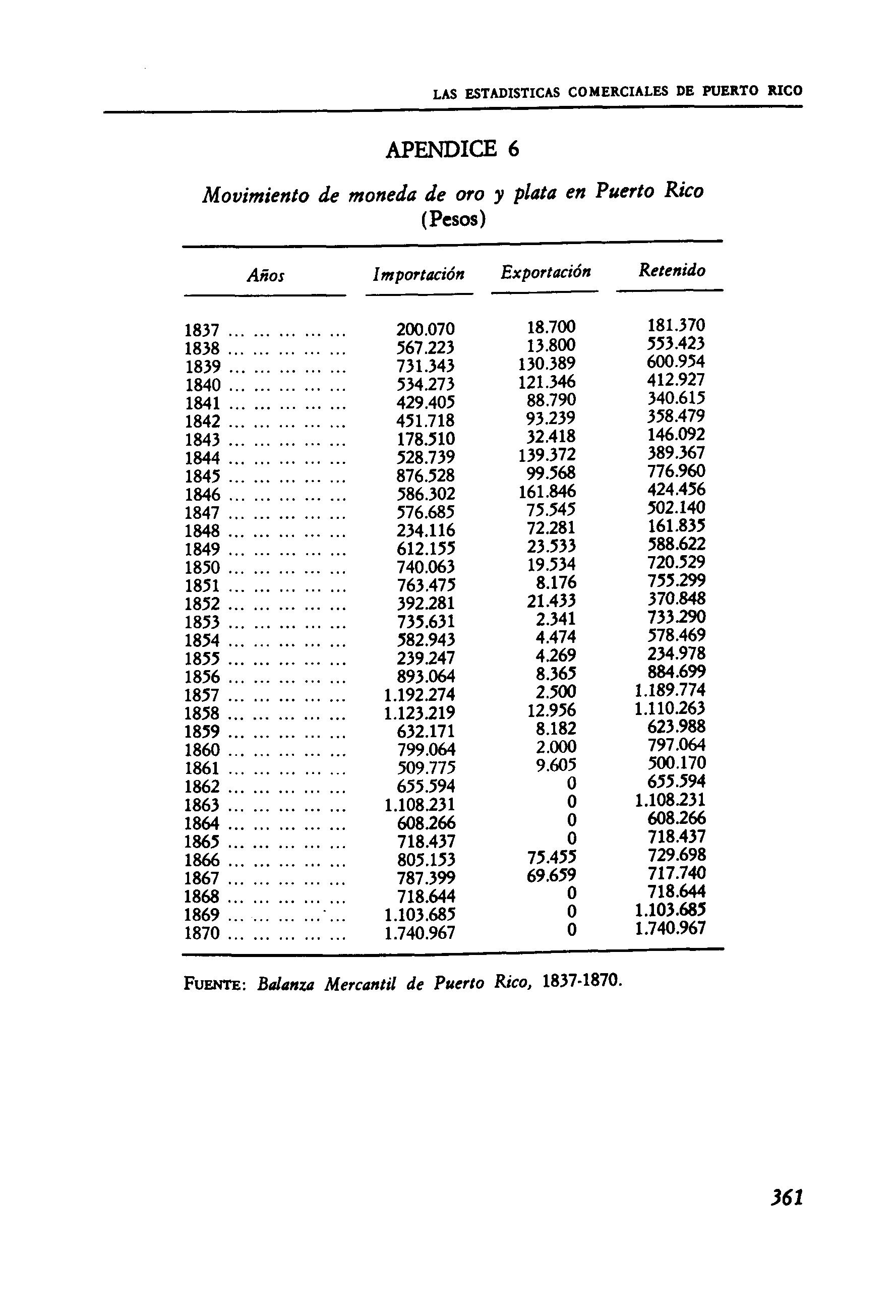 FUENTE: Balanza Mercantil de Puerto Rico. 1837-1870.