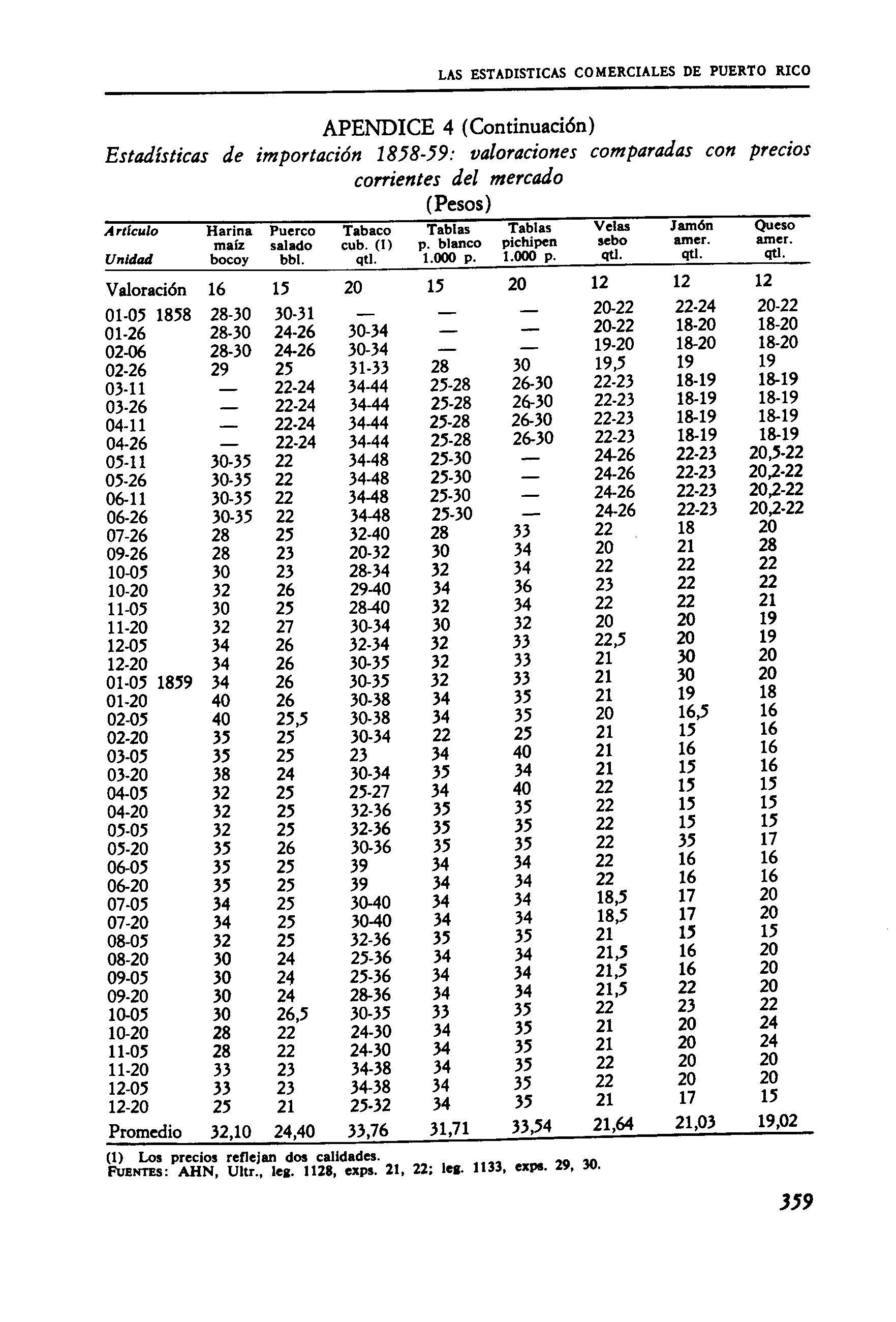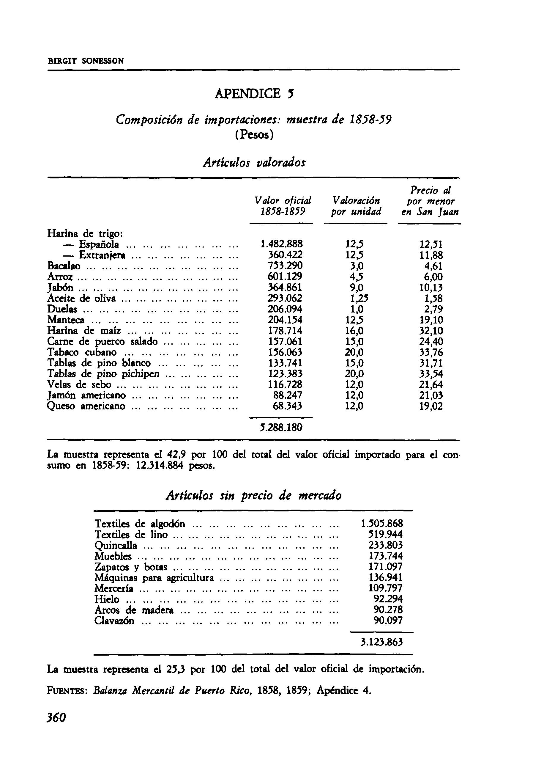 FUENTES: Balanza Mercantil de Puerto Rico, 1858, 1859; Apéndice 4.