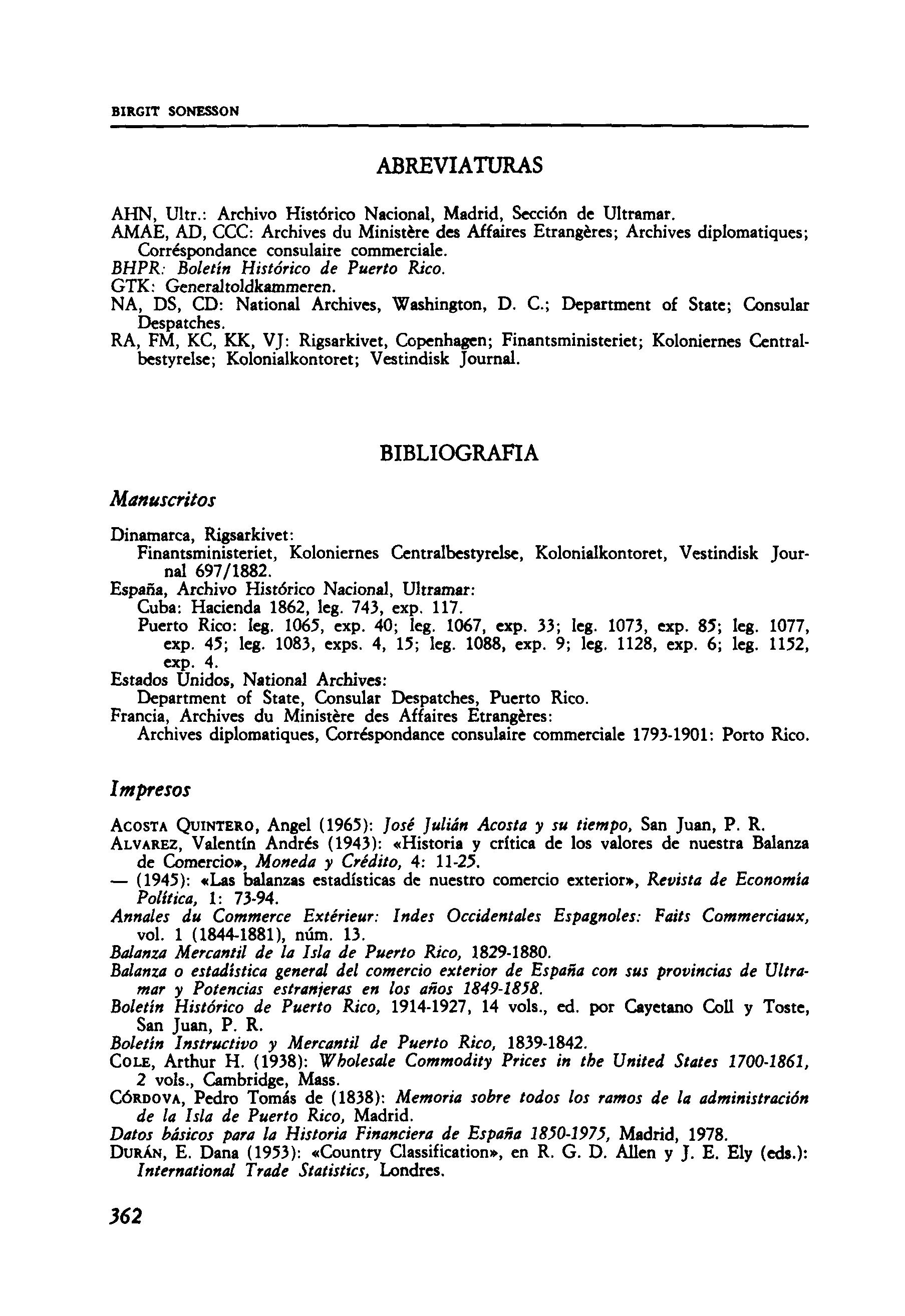 SONESSON, Birgit (1974): «Puerto Rico y Santomas en conflicto comeraal. 1839-1843» (tesis de maestría) Universidad de Puerto Rico ,. t,-„_jí,rica oara Puerto - (1984): «La formación de una administración y una política hacendística para ruerto Rico: el papel de los funcionarios». Hacienda Pública Española ^ - 275^93_ - (1985): «Puerto Rico's Commerce 1835-1865: From Regional to World Wide MarKet Relations» (tesis doctoral), New York University. C.„„Í„„„ , T„,'„ „ ZAPATA
