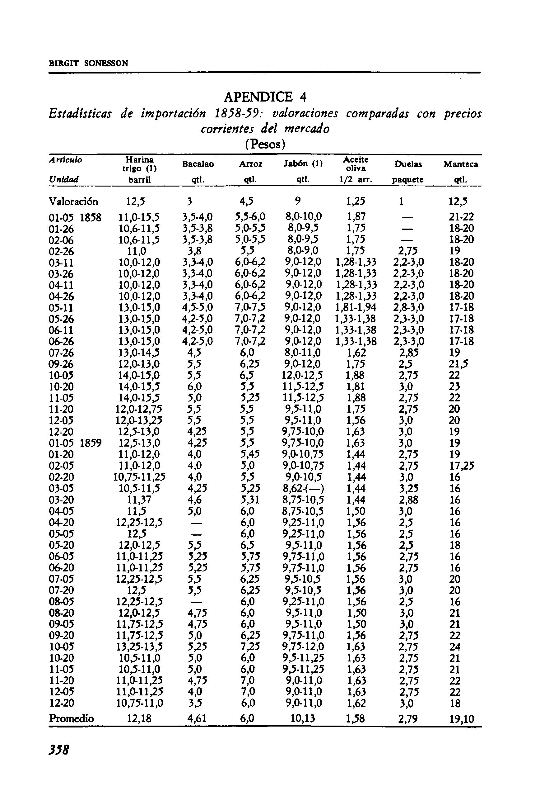 Estadísticas de importación 1858-59: valoraciones comparadas con precios corrientes del mercado (Pesos)