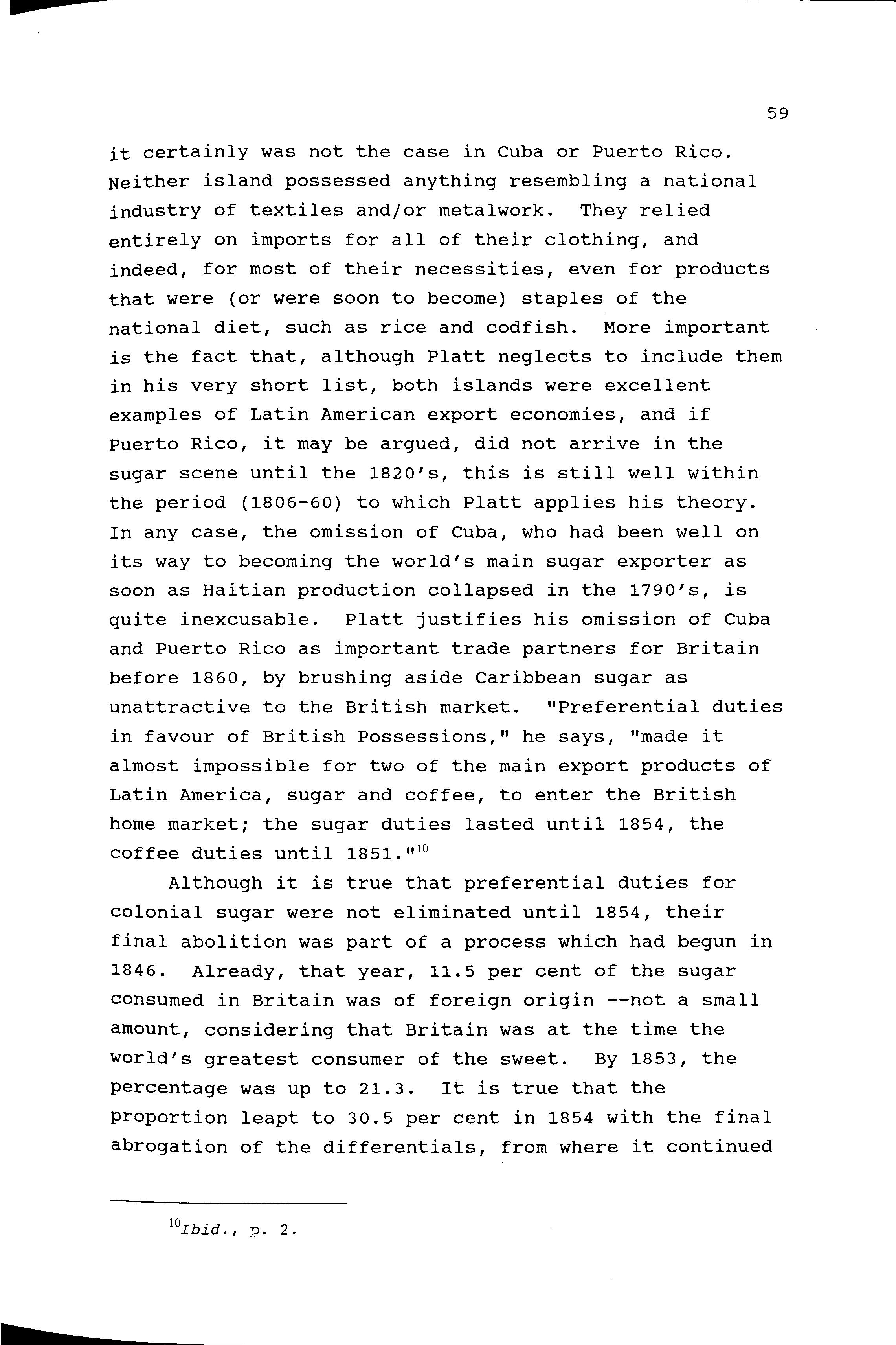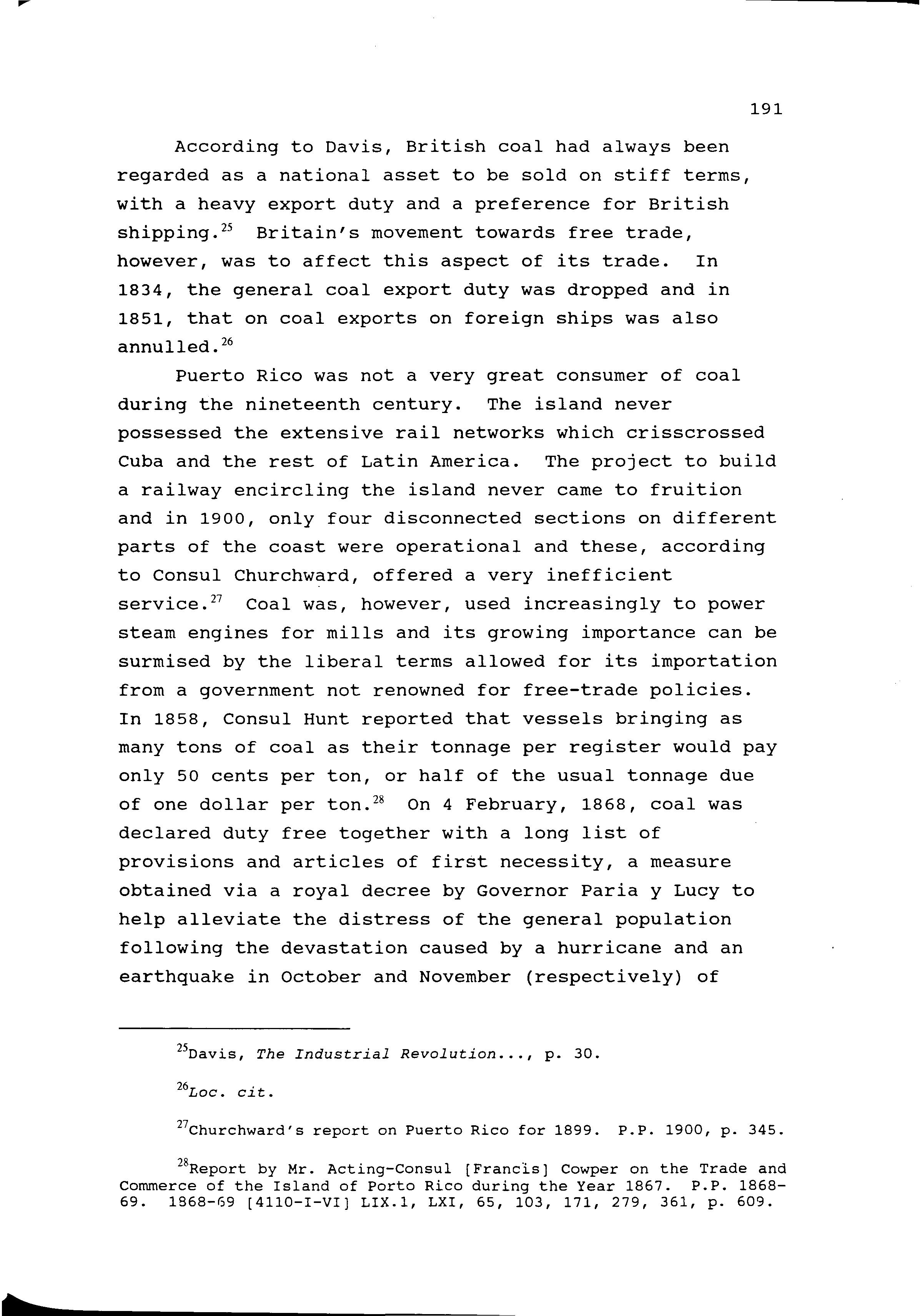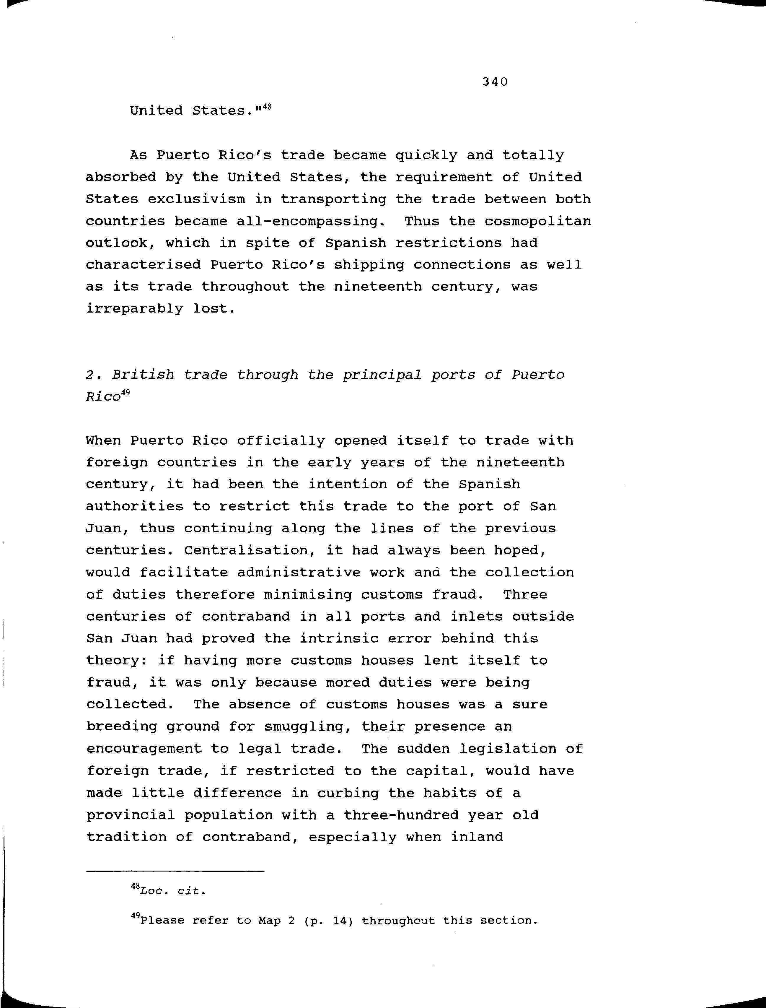 which Puerto Rico once shared with Great Britain, I may help to dispel some of the indifference which the island's present isolation has promoted abroad. But much more importantly, it might strike a chord of surprise, or perhaps even familiarity, amongst a people who have become so accustomed to regarding themselves as powerless before fate and the incumbent metropolis, to realise that that same "small tropical island, densely populated [and] poor in natural resources"17 , once carried out an "immense British commerce" in spite of its status as a Spanish colony and in spite of the proximity of its powerful American neighbour.