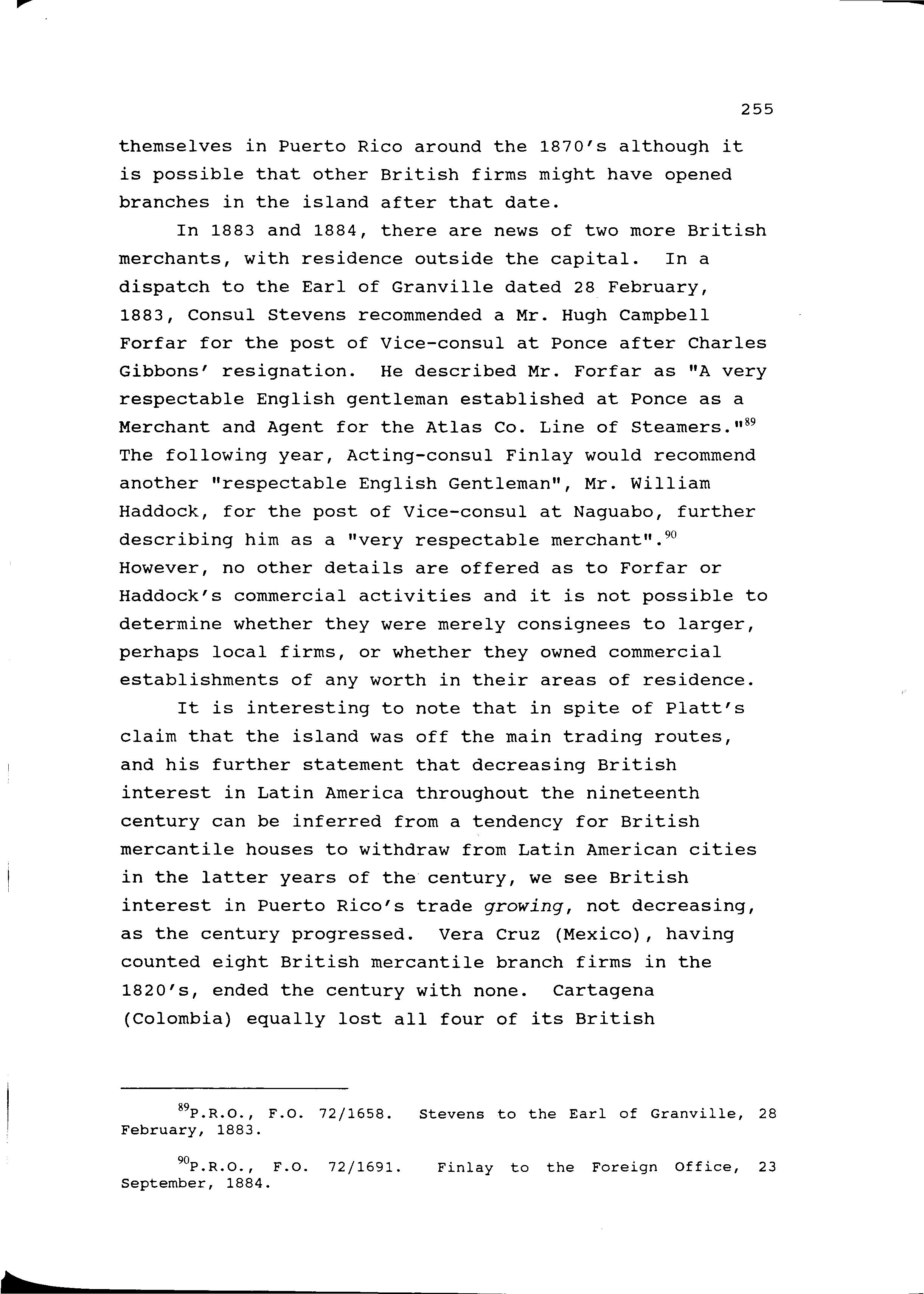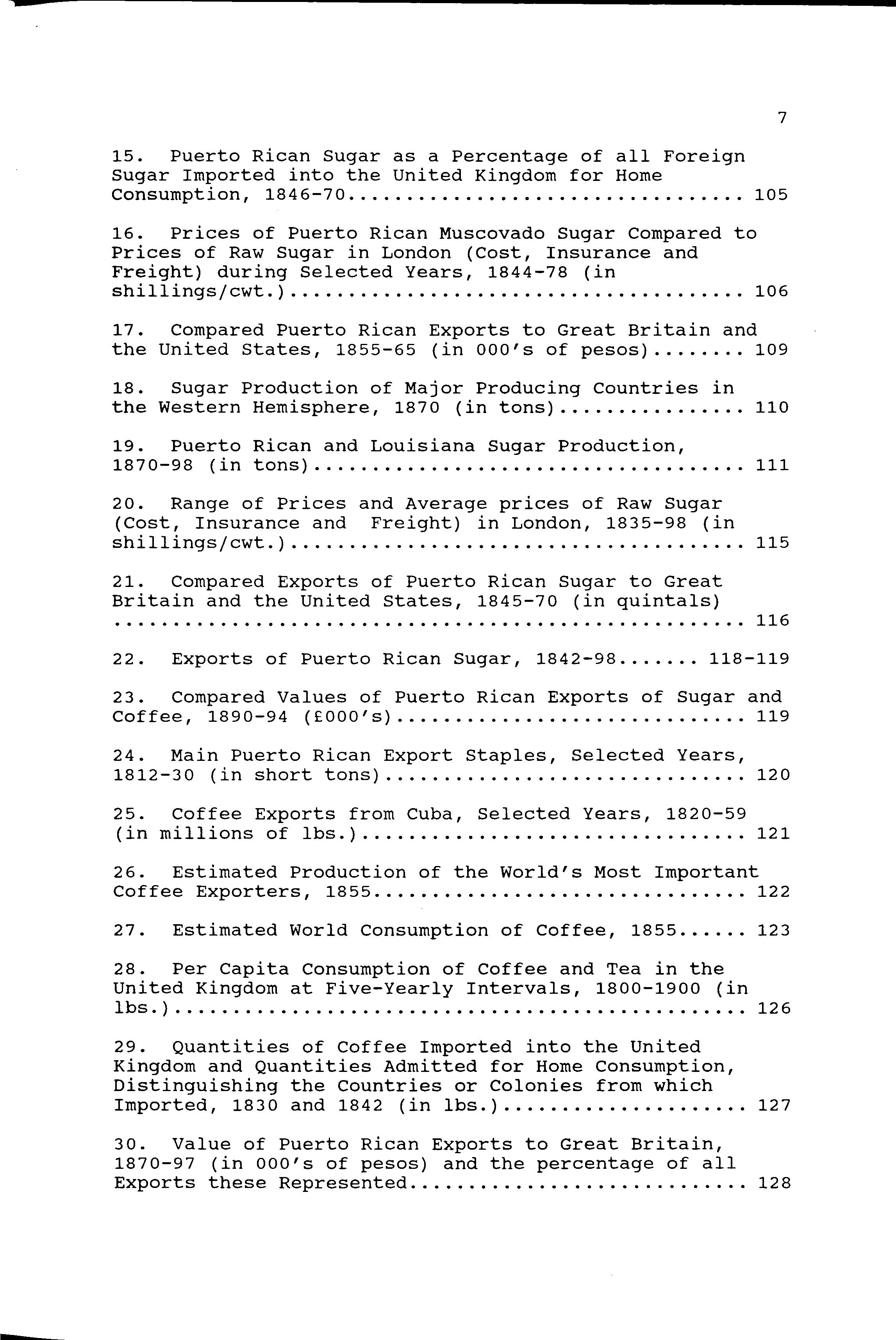 It is almost ten years since I first chose to study the trade which Puerto Rico held with Great Britain during the nineteenth century. I considered it a very practical choice for my first undergraduate research project: primary sources were accessible (at the University of Puerto Rico) and the subject had not previously been tackled in depth by historians in either country. In fact, the indifference which it had as yet attracted, on both sides of the Atlantic, could only indicate to me that my enquiries would yield the innovative but basically modest conclusions which were all I dared hope for in this very first attempt at historical research.