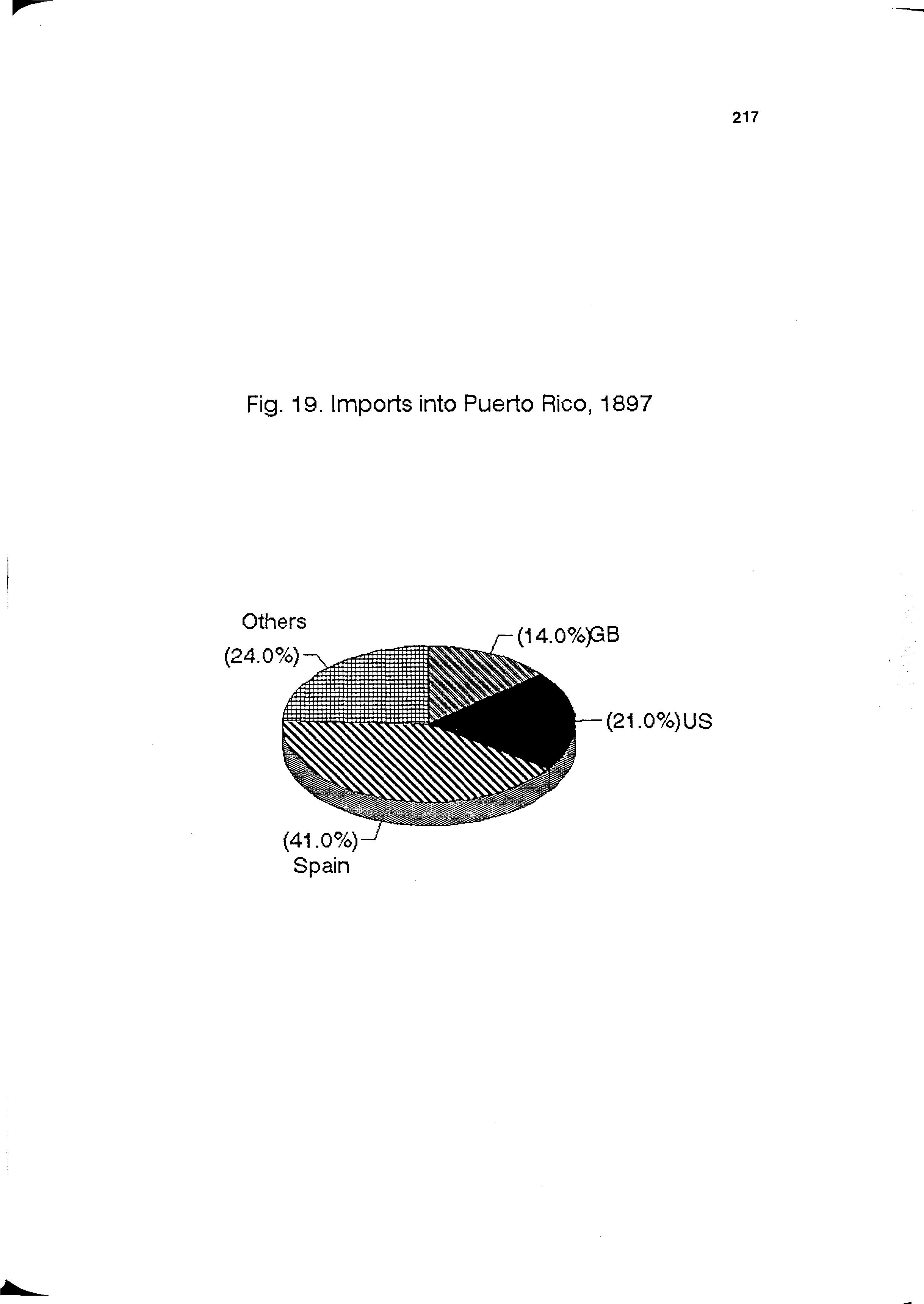 century in anticipation of the advent of political control. Such, after all, had been the case in Cuba, and the similarities between the character and culture of the two Antilles have been endlessly expounded by poets and historians alike. Cuba, in 1898, was a territory of the United States in everything but in name. One would think that such must have also been the case of Puerto Rico which today bears both the name and the reality of a colony of the United States. A tug-of-war between Spanish political control and United States economic domination over Puerto Rico, such as had occured in Cuba, was expected. A large and flourishing commerce with a third party, such as Great Britain, was not