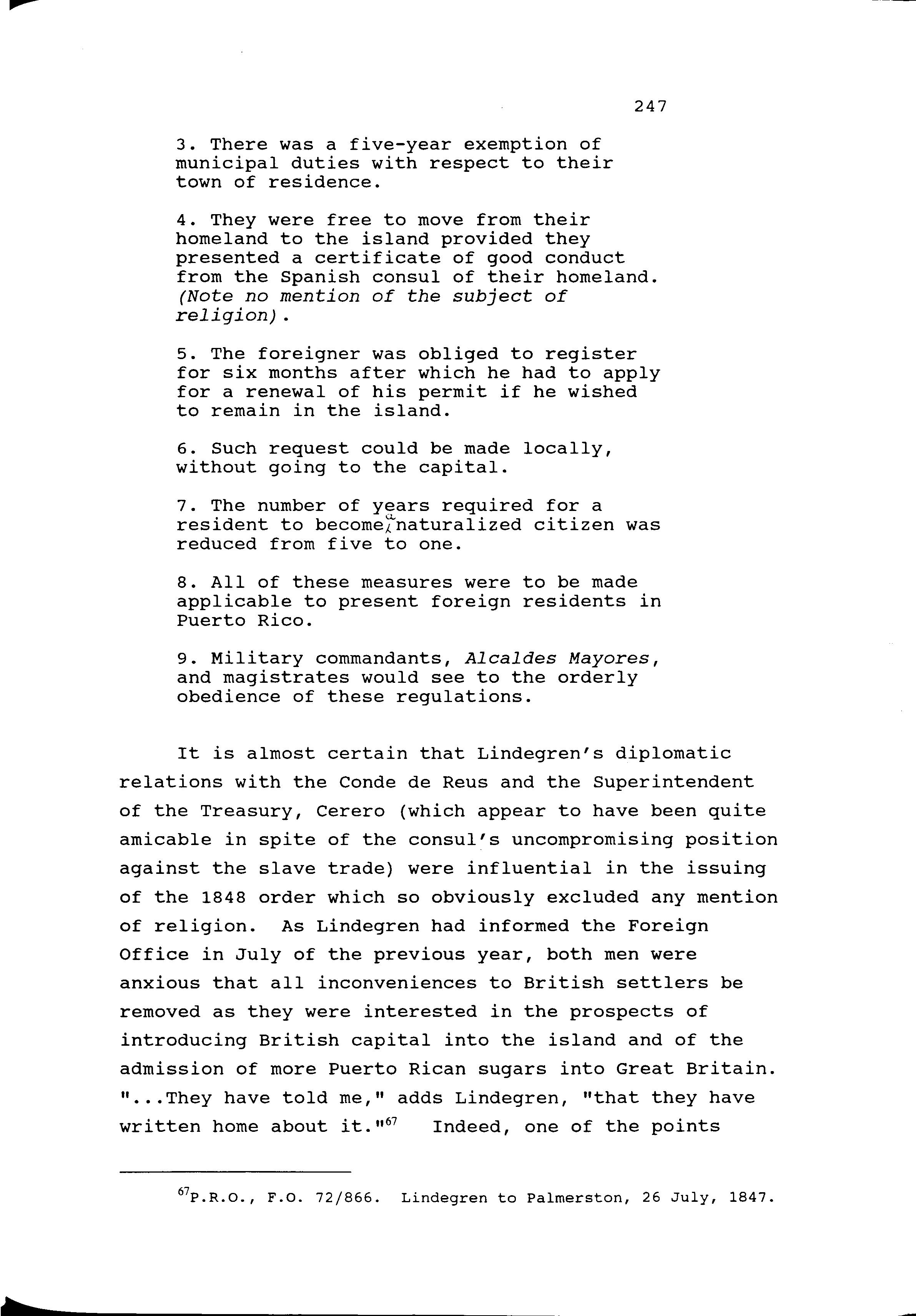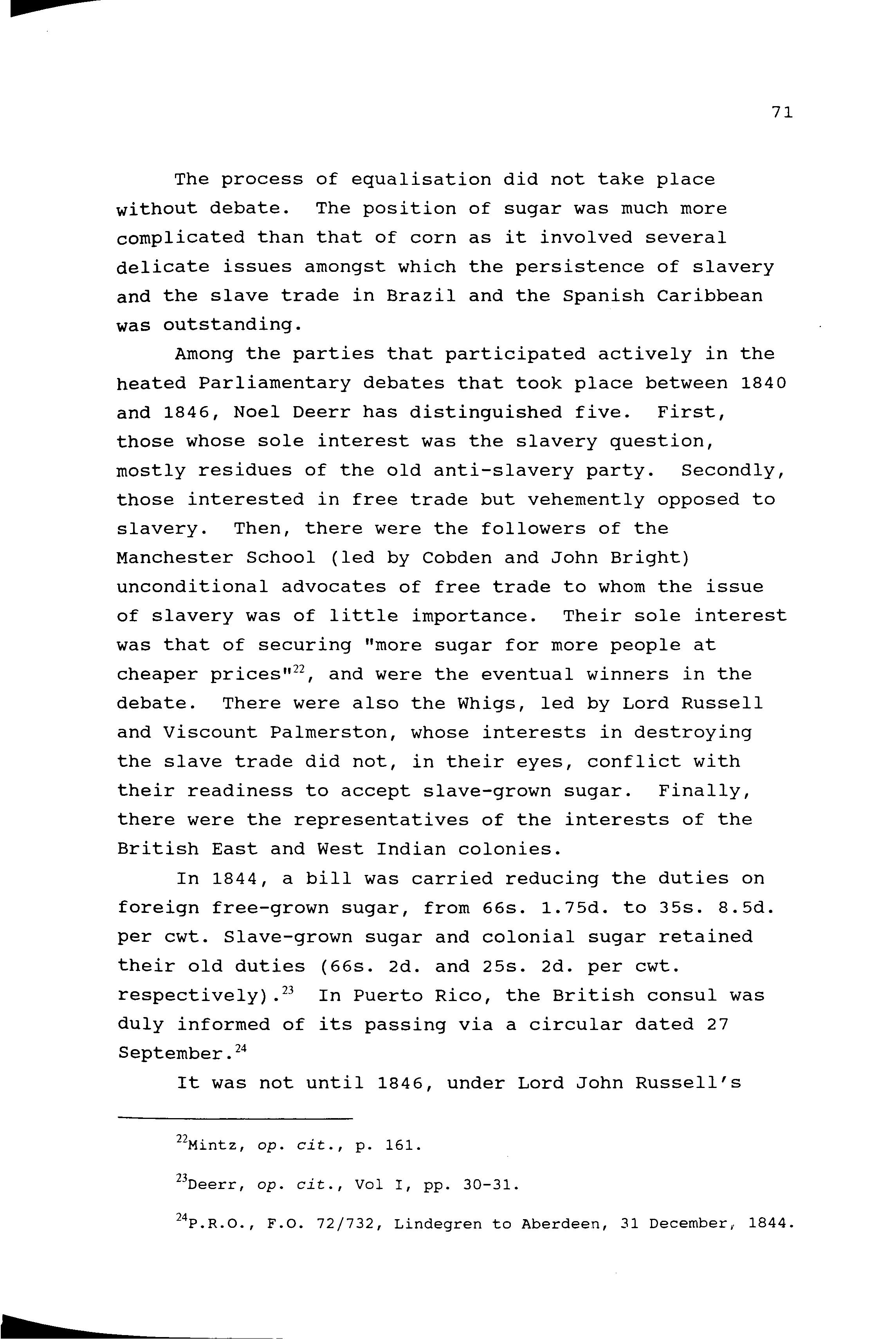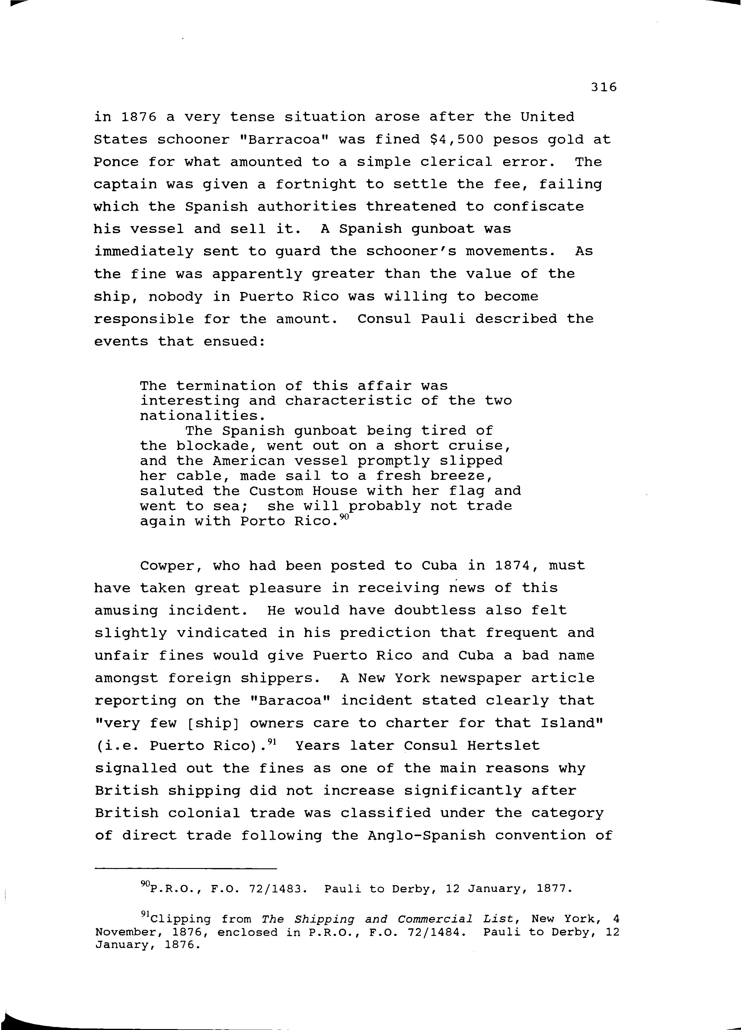 Cowper's assertion is easily corroborated in the island's trade statistics or Balanzas mercantiles% which are fortunately available in uninterrupted sequence for the whole of the period that concerns us here This ranges from 1844, the year in which the first British consul, John Lindegren, arrived in Puerto Rico, to 1898, when Puerto Rico was occupied by the United States.