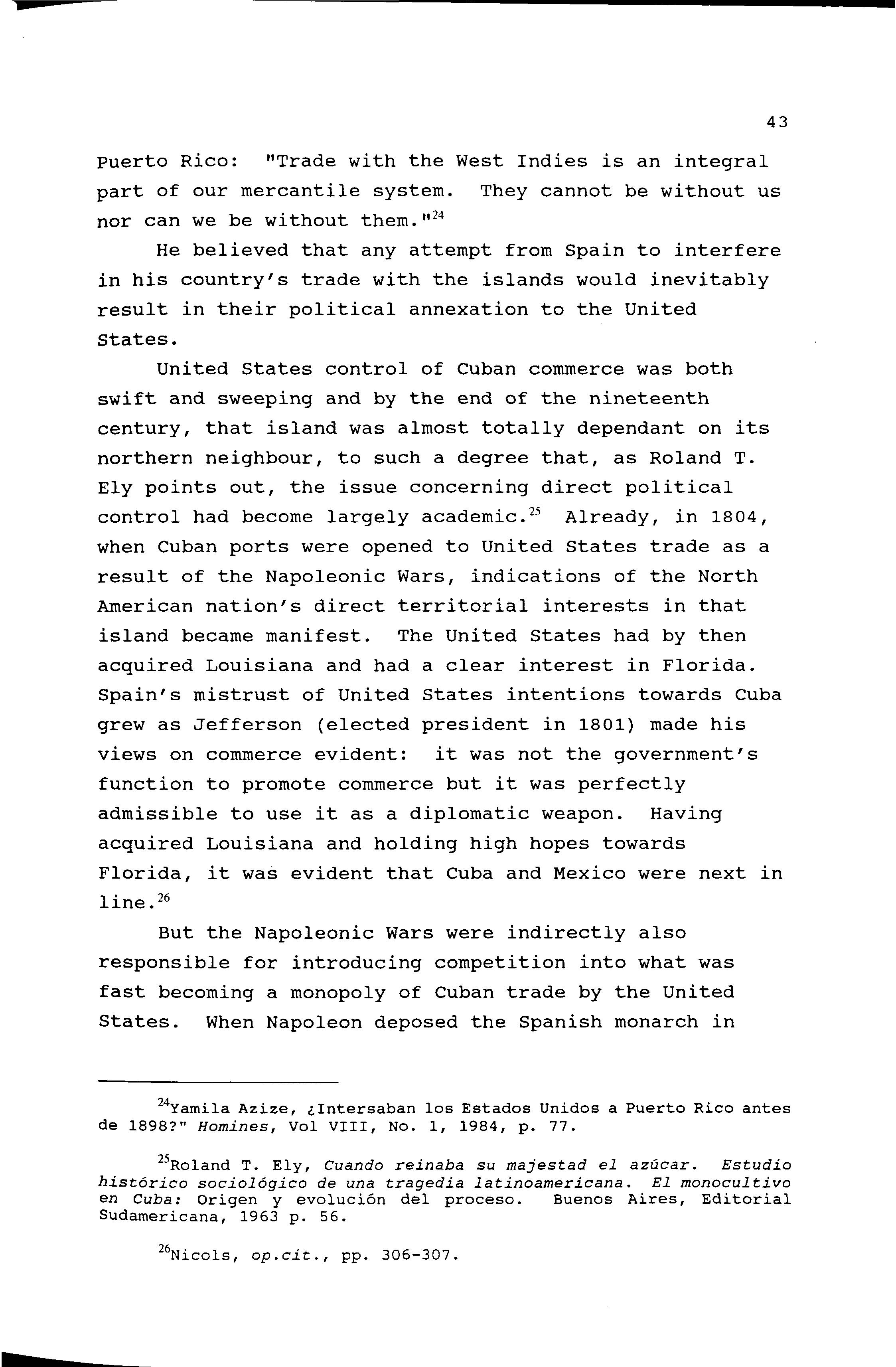 13Roy F Nicols, "Trade Relations and the Establishment of the United Sates Consulates in Spanish America, 1779-1809", Hispanic American Historical Review, Vol. XIII, No. 3, August 1933, p. 291; and Sonesson, "Puerto Rico's Commerce...", pp. 29- 30.